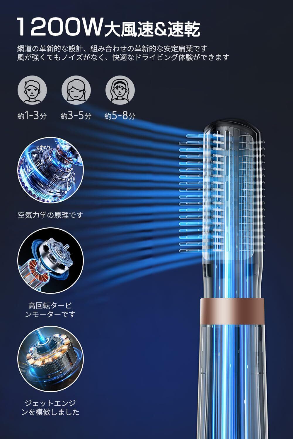 【新春セール】VORAGA ドライヤー 大風量 電気髪ごて 速乾 ヘアドライヤー 1200W カールドライヤー 簡単にスタイリング 3段階冷熱風量調節 くるくるドライヤー マイナスイオン 付属品5種 コスパ 過熱防止機能 熱風ブラシ 恒温ヘアケア ストレート/カーリーヘア/ボリュームアップ 家庭用/ヘアサロン/出張 おしゃれ バラ金