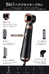 【5IN1ドライヤー&ヘアスタイリングツール】このドライヤーには5つの交換パーツがついています。ヘッドは中空スタイリング、風を集める口、カール櫛、半円櫛、ストレート櫛。ドライ、カール、ストレート、ふんわり、スタイリング機能が一体となっています。自宅で簡単にサロンスタイルが作れます。