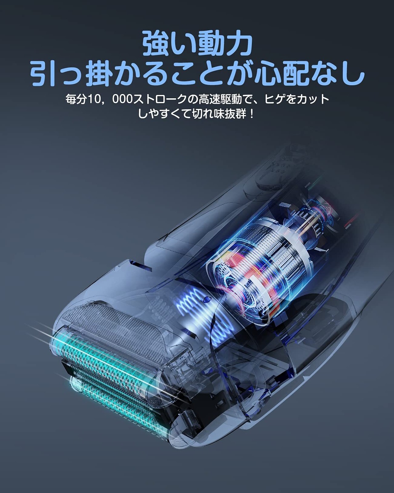 【トリマー搭載・強力モーター】ポップアップトリマーで気に入りのスタイルを自由に作ります。濃いヒゲから太いヒゲ、口ヒゲ、もみあげのお手入れに使用できます。シェーバー専用のリニアモーターを採用し、高速でパワーが強く多くのヒゲをまとめて剃れます。毛を引っ張ることが心配なし。