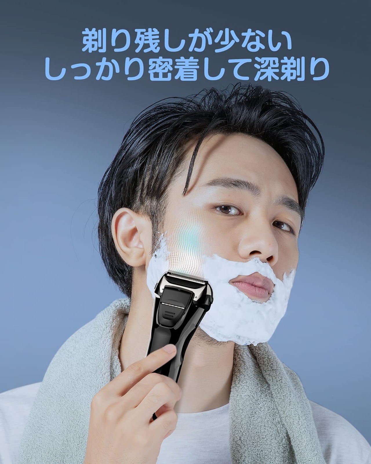 【清潔衛生・お手入れ簡単】ヒゲクズ貯蔵のところが細菌繁殖の巣にならなく、細菌性皮膚感染にならないように、丸ごと水洗いできます。コンパクトなサイズで持ち運びに便利ですので、普段のひげそりはもちろん、出張先、旅行先、車内でのご利用も楽です。人体工学に基づいて握りやすい設計、つや消しを仕上げた表面は快適な手触りで濡れても滑り落ちの心配がありません。