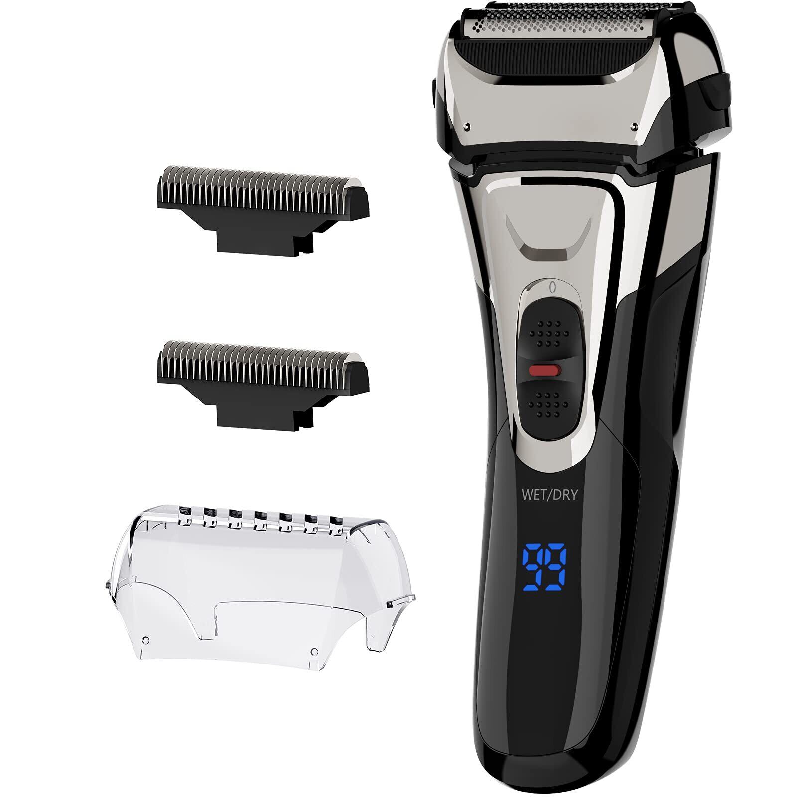 シェーバー メンズ 髭剃り 電動 電気シェーバー 往復式 ひげそり 3枚刃 メンズシェーバー 電気カミソリ ウェット&ドライ お風呂剃り可 IPX7防水 LEDディスプレイ トリマー付き 替刃付き 軽量 持ち運び便利 日本語説明書付き
