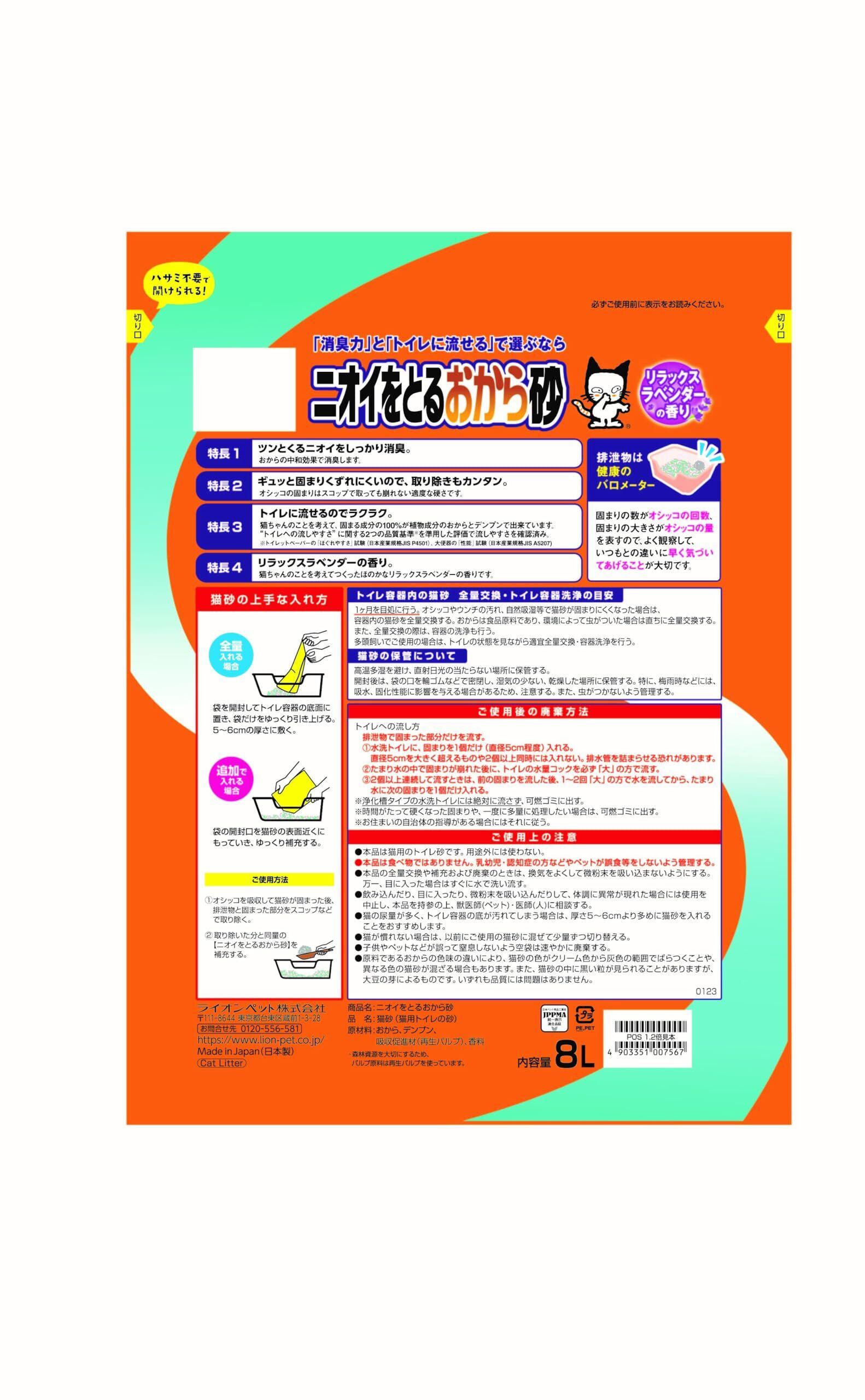 ライオン ニオイをとる砂 猫砂 ニオイをとるおから砂 8L×3袋 ケース販売 おから