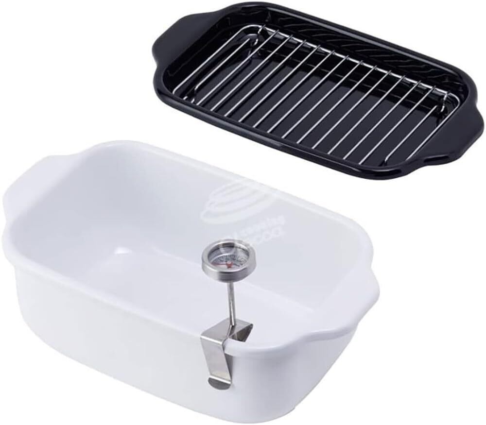 富士ホーロー(Fuji Horo) 天ぷら鍋 ホーロー 角型 温度計付 IH対応 揚げ物 バット スノコ付き ホワイト TP-20K W