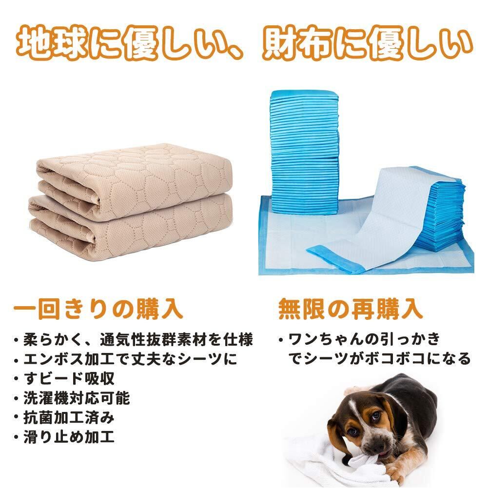 ペットシーツ 洗える 猫 犬用 おしっこパッド ペット用 トイレ下敷きマット 速乾 洗える 脱臭 抗菌(ベージュL 二枚セット)