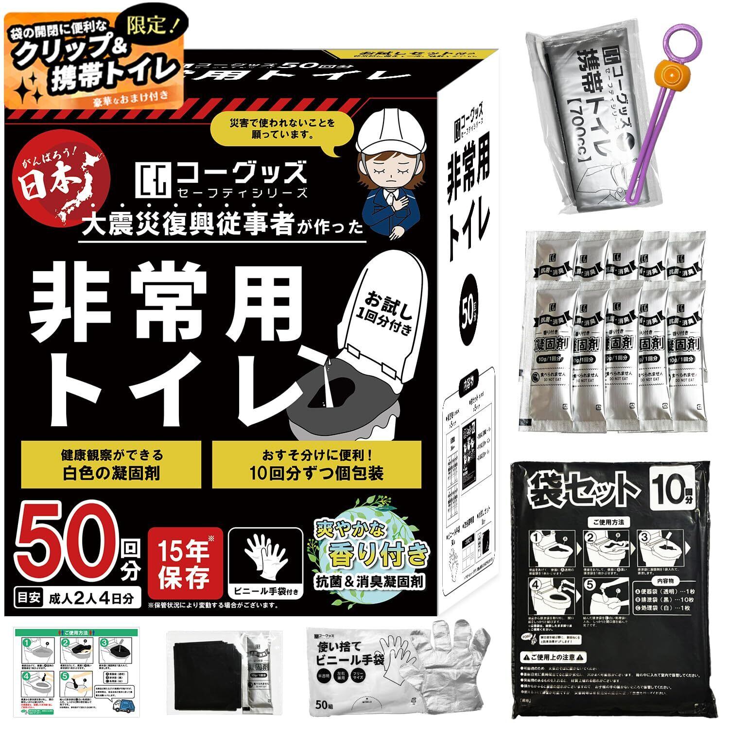 【特価商品】【大震災復興従事者が全力で作り上げた】 簡易トイレ 非常用トイレ 防災グッズ 災害用トイレ (+車用トイレ&袋留クリップ おまけ付き) 災害用 ポータブルトイレ 防災 トイレ 災害 車 渋滞 簡易トイレ(50回分) | ニコニコSHOP