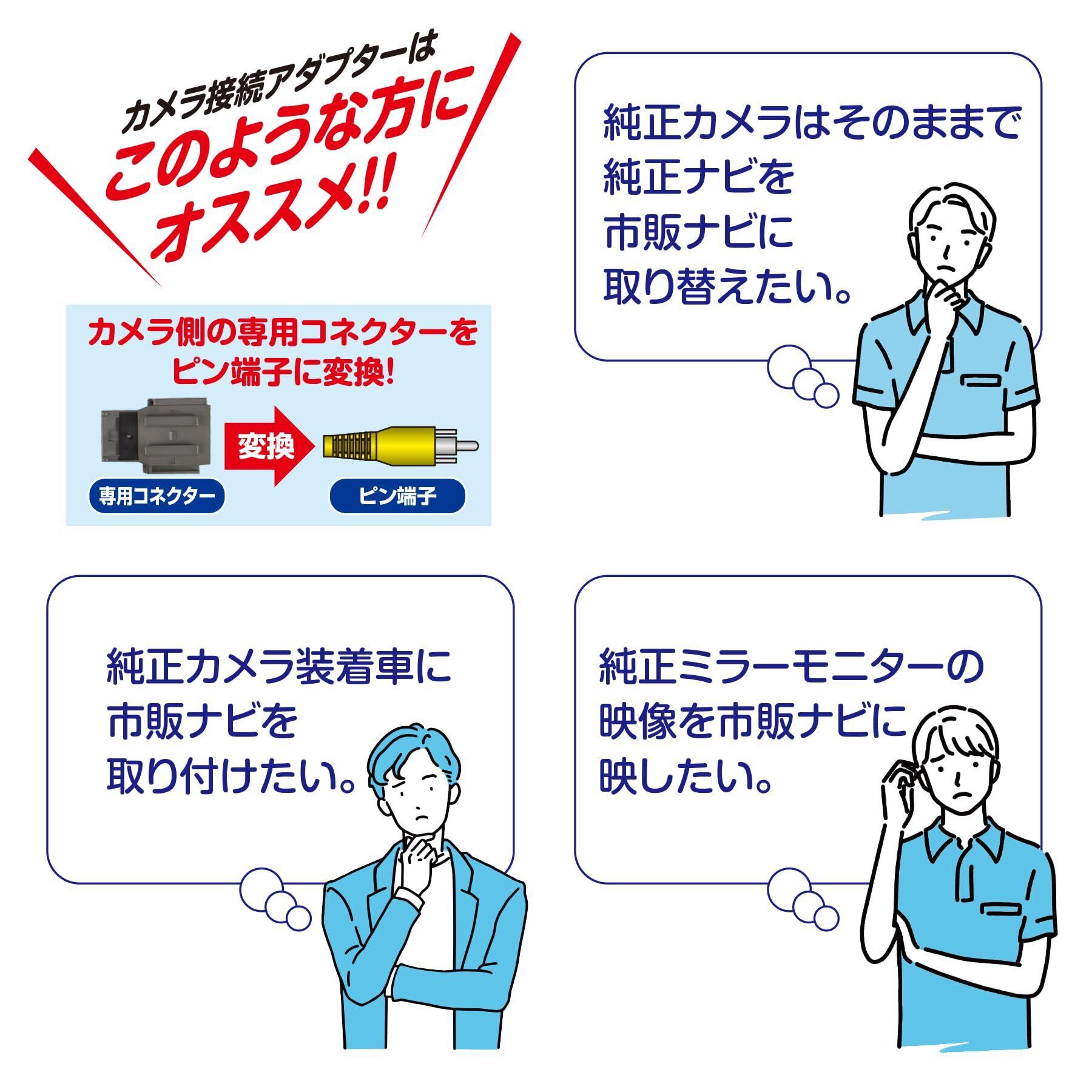 トヨタ・ダイハツ車のカメラ接続アダプターにプラスして、純正部品の車両信号変換ケーブルで取付していたものを純正部品を使用せずに取付できるアダプターです。