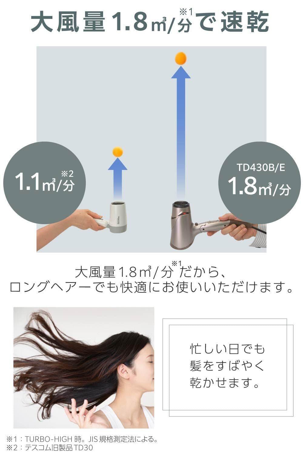 TURBO‐DRY‐SET 速乾からセットまで簡単に切替えできる、選べる3段階風量。