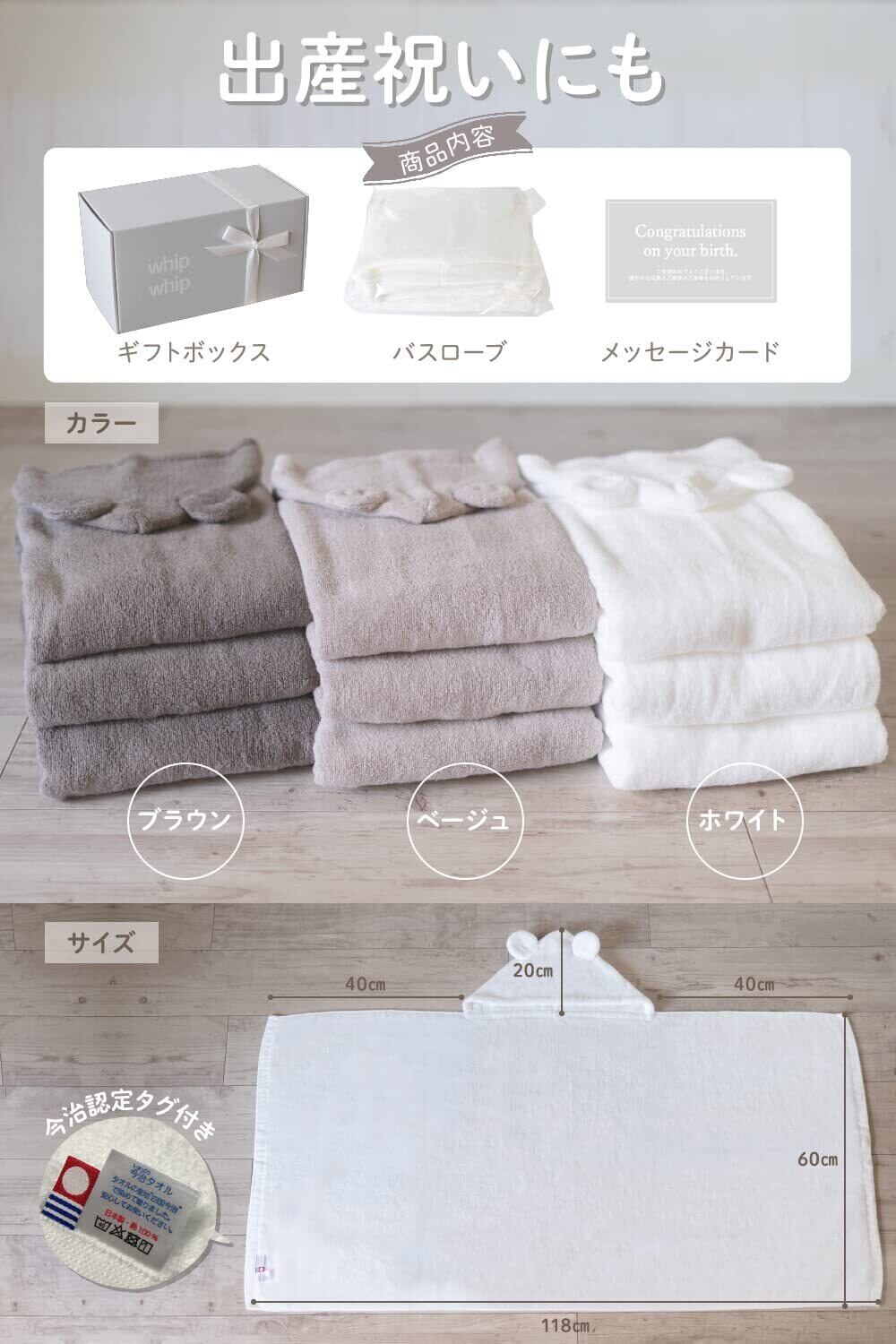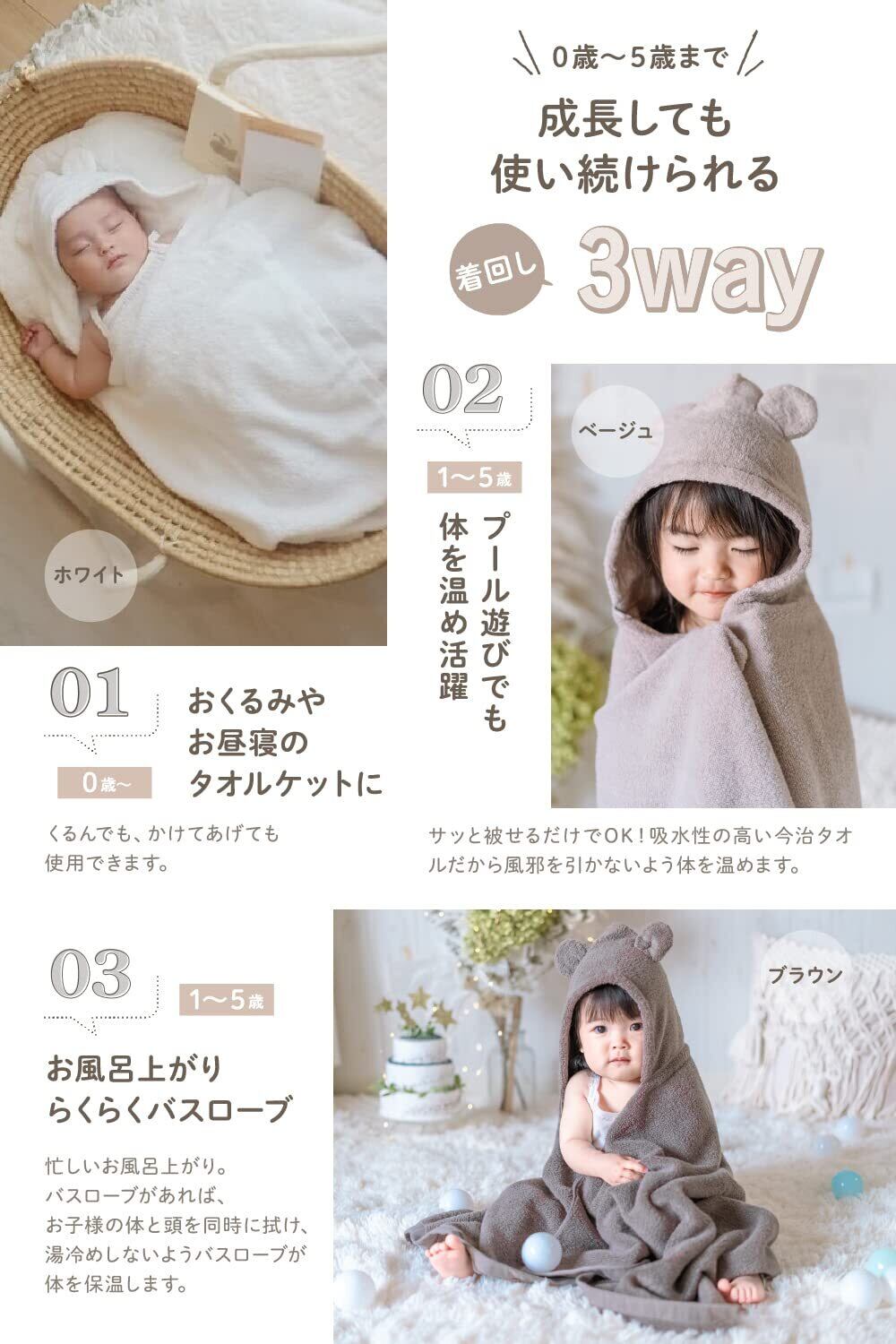 今治タオル whipwhip 出産祝い ベビーバスローブ 男の子 女の子 (ホワイト)