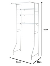 HEIAN SHINDO ランドリーラック 棚3段 ハンガーバー付き 横伸縮 縦型ドラム式両対応 ホワイト 幅60-93×奥行53×高182cm L-5 平安伸銅工業