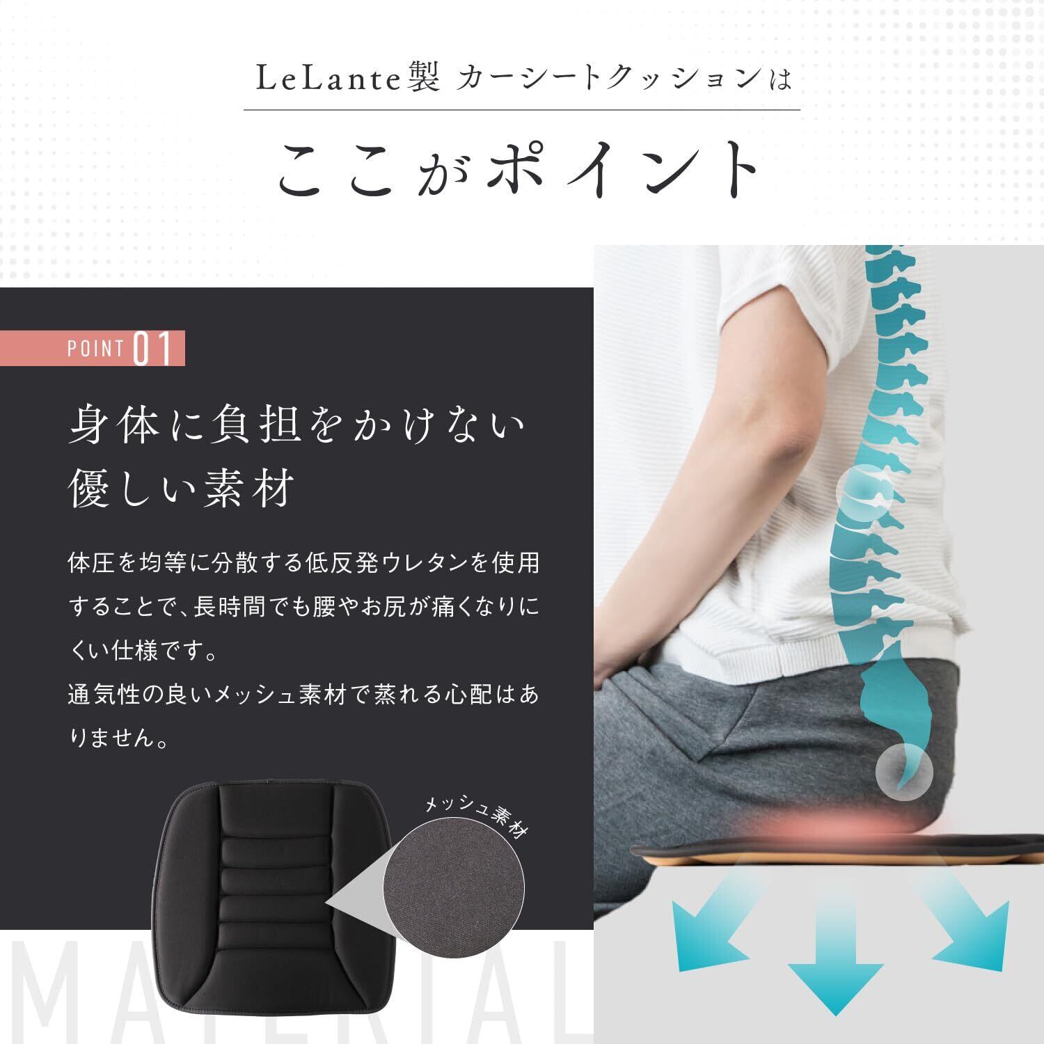 【他と何が違うの?】LeLante シートクッション は軽くて衝撃吸収性や制振性に優れた、低反発ウレタンをメイン素材として採用した カーシートクッション です。形や動きに合わせて形状が変化するため、スムーズに体圧を分散。体にかかる負荷を大幅に軽減します。