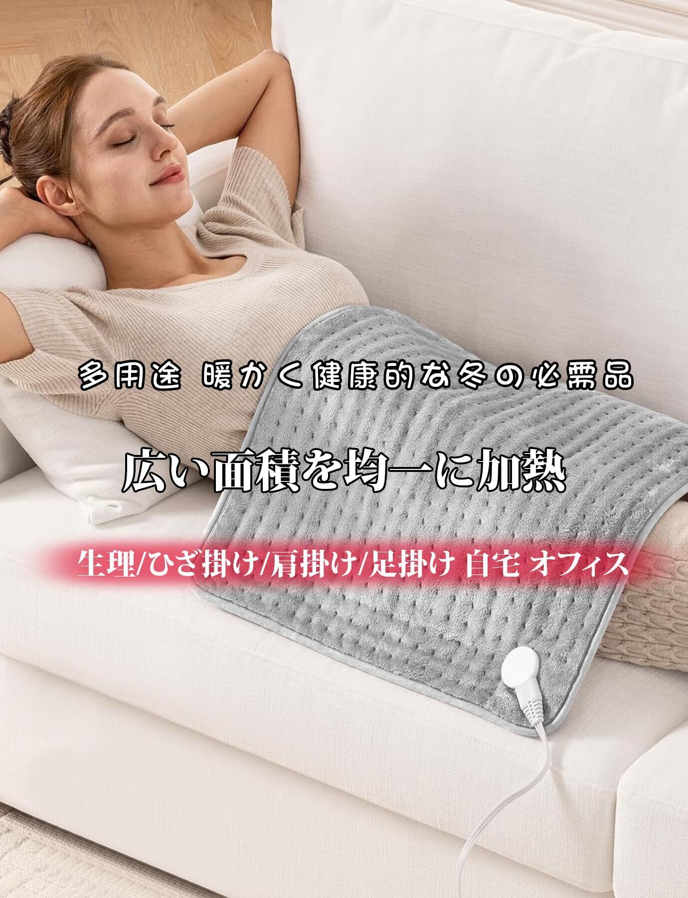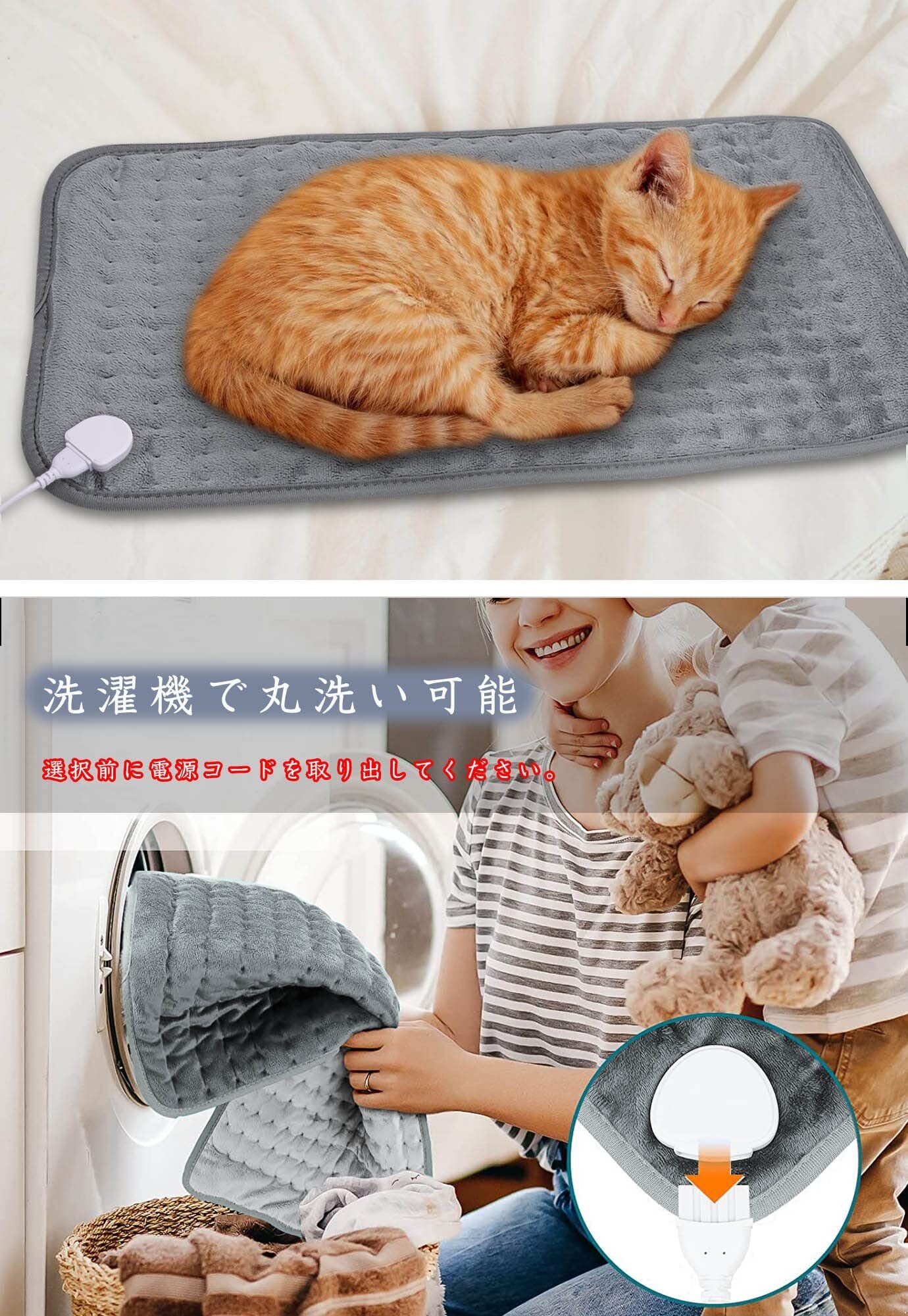 [すばやくヒートアップ] 電源が入ると、2分が経たないうちにほんのり暖かい。暫くすると、かなり熱くなります。丸ごとで洗濯機で洗濯が可能です。ホットマットをお手入れする際は、必ず電源を抜いてください。