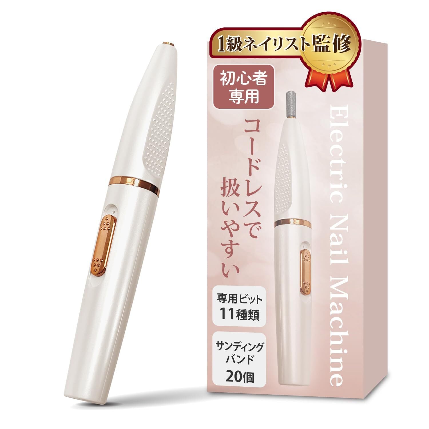 【1級ネイリスト監修】 ネイルマシン 電動 初心者専用 (全32点セット)「18000rpm回転/ジェルオフにも十分なパワー」 (ホワイト)