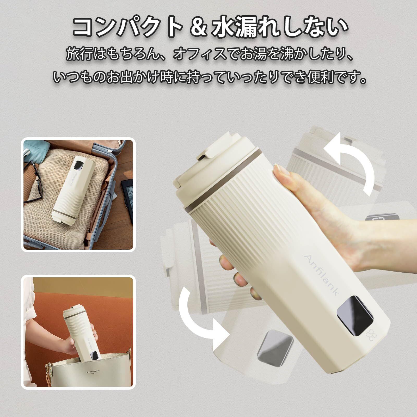 【人気商品】Anfilank 電気ケトル ポータブル 湯沸かしケトル 携帯 小型【2025アップグレード】 温度調節 保温 380ml 海外対応 日本対応 トラベルケトル ステンレス 二重構造 旅行 一人用 ギフト PSE認証済み メーカー保証 (ベージュ色) | ニコニコSHOP