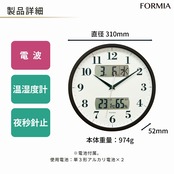 Formia(フォルミア) 掛け時計 時計 壁掛け 電波時計 静音 温度 湿度 温湿度計 日付 カレンダー 曜日 夜間秒針停止 アナログ 保土ヶ谷電子販売 ブラウン HWC-001