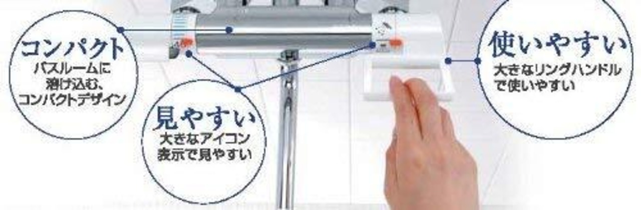 【適温キープ】サーモカートリッジの働きで湯水の混合量を自動で調整し、常に一定の温度を保つことが出来ます。