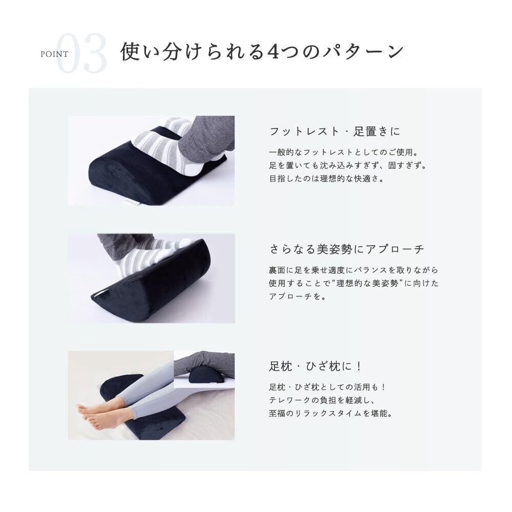 【使い分けられる4つのパターン】一般的な フットレスト ( 足置き )としてだけでなく、裏面に足を乗せ、適度なバランス感を保ちながら使用することで更なる美姿勢に向けたアプローチも可能。また、リラックスタイムのお供に膝下に置くことで 膝枕 としてもお使い頂けます。様々な使い方ができる MyComfort のプレミアム フットレスト で至福のリラックスタイムを取り入れてみませんか。