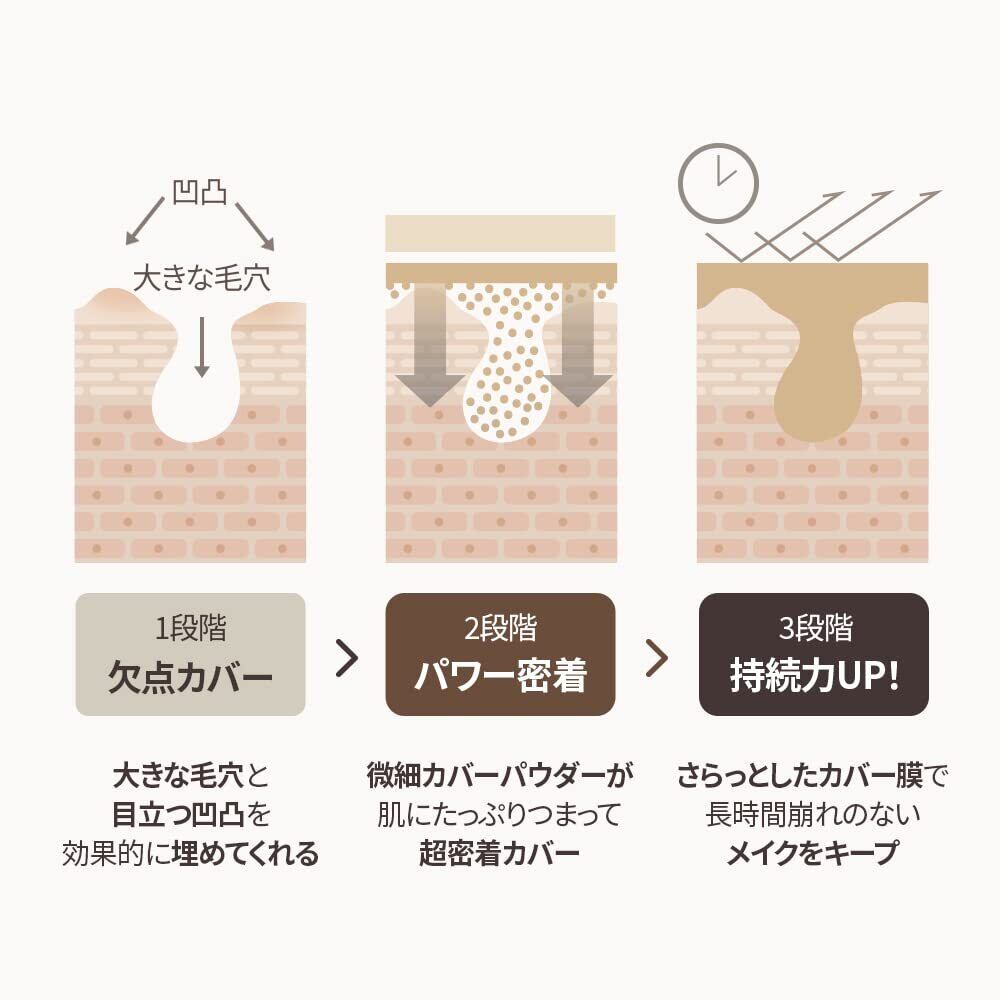 2重コア構造でコアエッセンス(ローション)+カバーリング(ファンデーション+日焼け止め)でマイルド成分UP、密着力UP