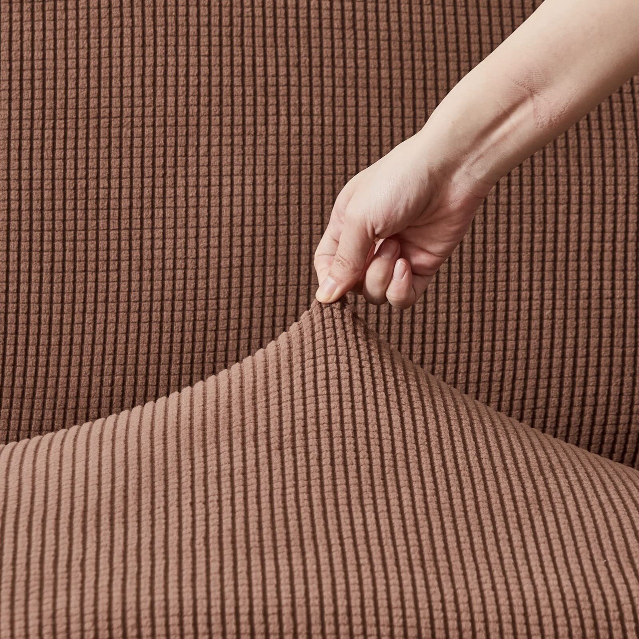 Topfinel ソファーカバー 3人掛け 肘付き 無地 北欧風 ストレッチ フィットタイプ 伸縮素材伸び良く 滑り止め 柔らかい 犬 猫 傷 防止 超便利 四季適用(ブラウン)
