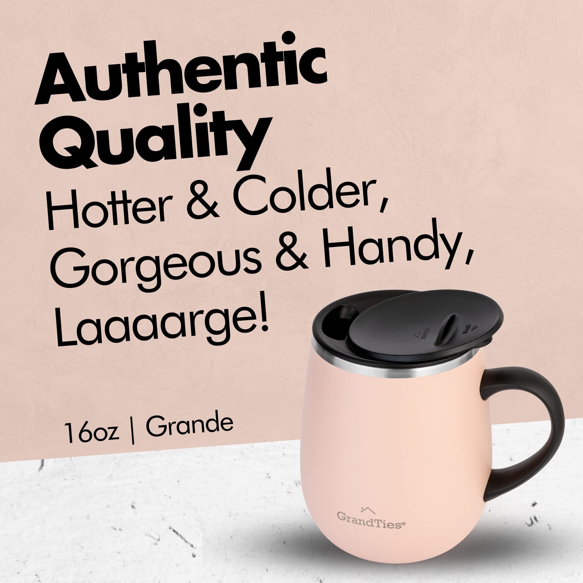 GRANDTIES グランタイズ 全19色 プレミアム真空断熱マグカップ 460ml 簡単開閉スライド蓋付き ステンレス製 二重壁真空断熱構造 保温・保冷機能付き オフィスでも人気 (ピーチクレム)