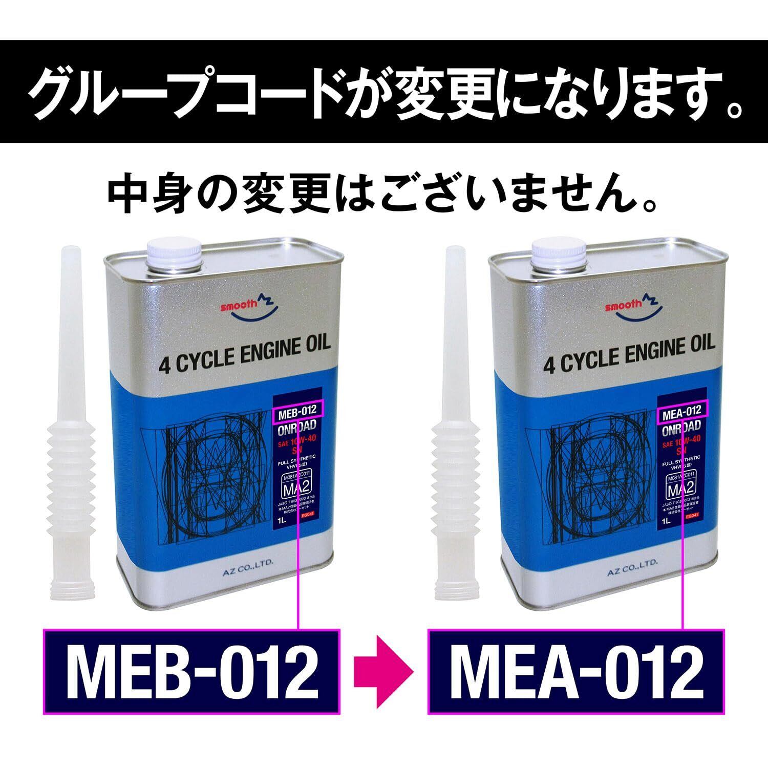 AZ(エーゼット) バイク用 4サイクル エンジンオイル 4L 【10W-40/MA2/100%化学合成油/2輪用】 MEA-012/EG044/ONROAD