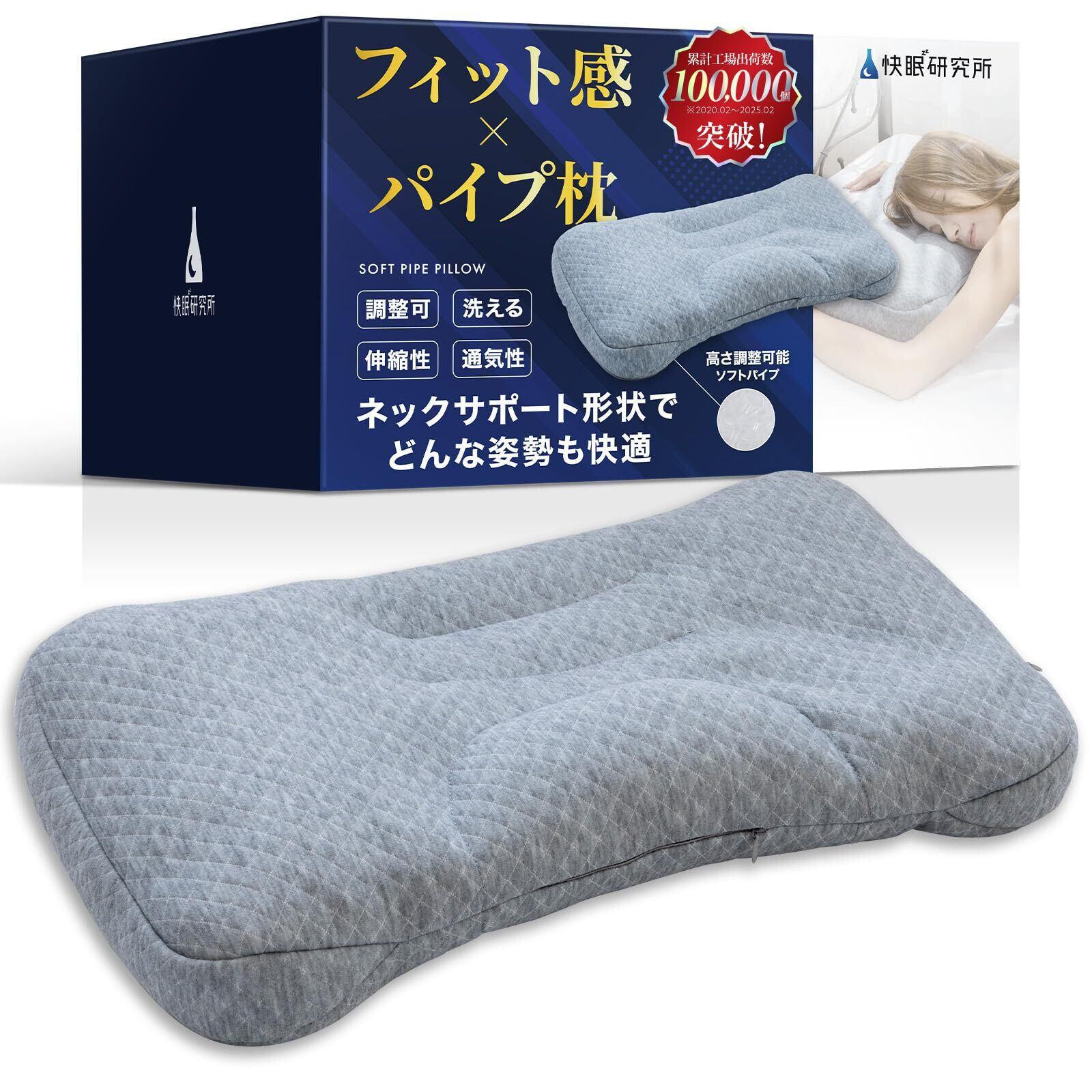 快眠研究所【理学療法士監修】パイプ枕 横向き対応 丸洗い可能 肩こりまくら 安眠枕 高さ調整可能 ネックピロー ホース枕 首肩フィット 快眠枕 通気性 補充用パイプ付き 33*53cm