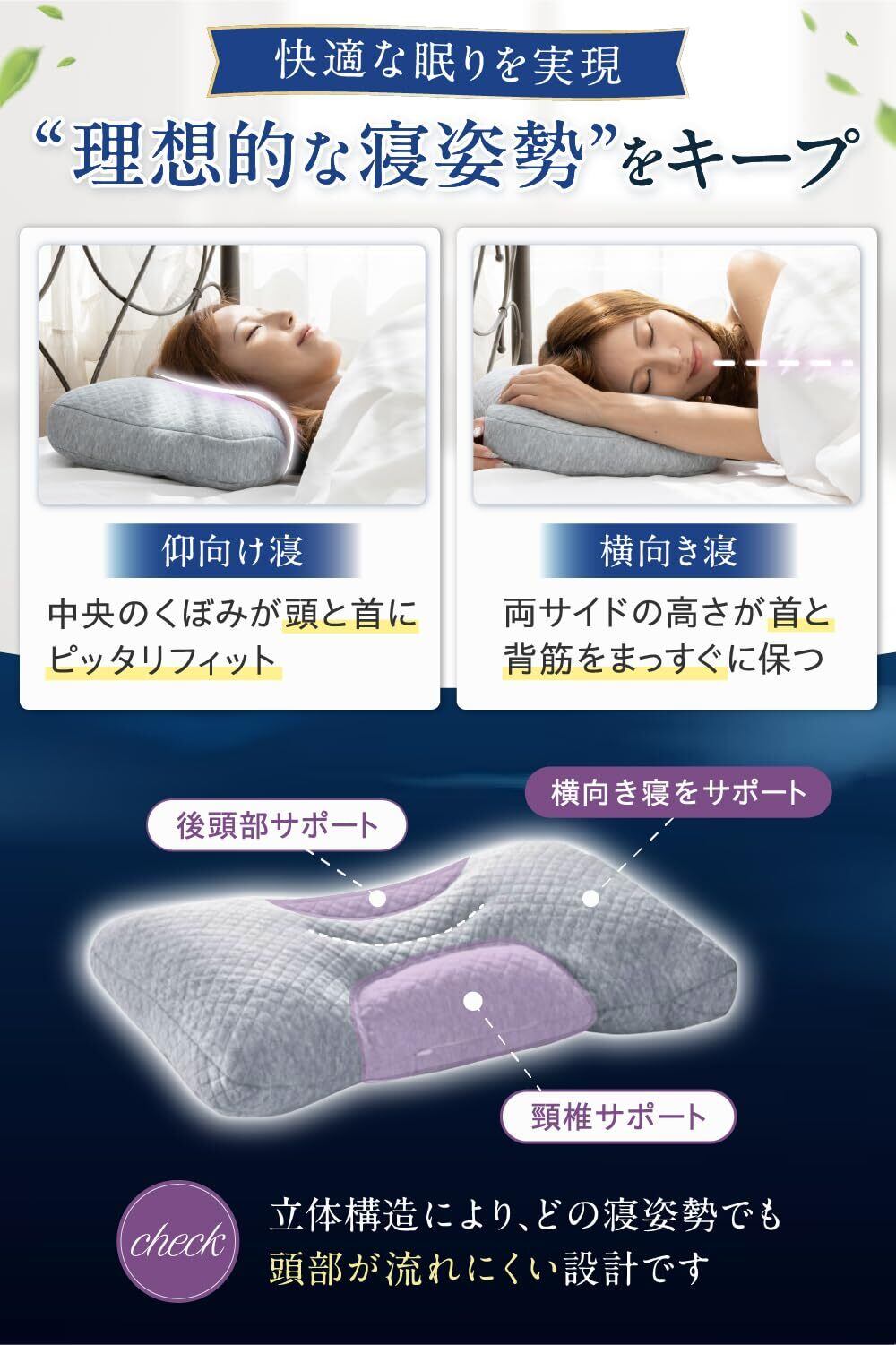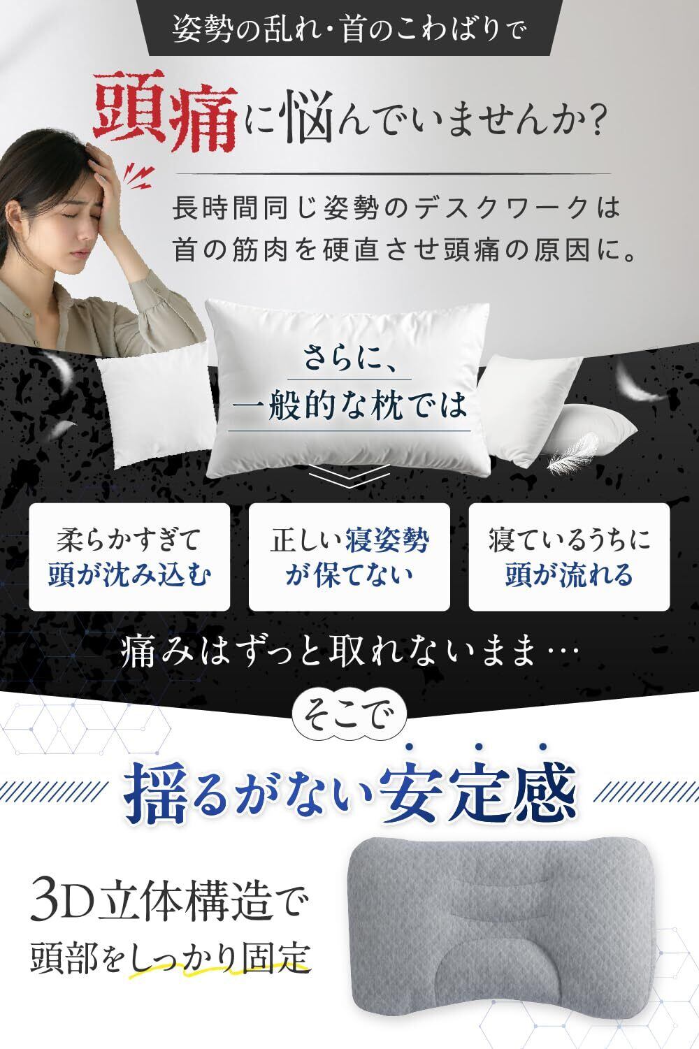 【肩こり/首こり対策&中央くぼみ形状で安定する枕】 人間工学設計と圧力分散に優れた低反発素材を採用し、日本人の体型に基づいて開発された枕です。中央くぼみ形状が頭と首を包み込み、首や頚椎を正常な形にキープしながら、頭部への負担を大幅に軽減。まるで無圧力のような寝心地を実現します。さらに、パイプ素材が頭の形や首のカーブ、寝返りに合わせて流動するため、気道が開きやすく呼吸がスムーズになり、寝返りやいびきの軽減に効果的です。 横向き・仰向け・うつ伏せと、どんな寝姿勢でもOK。低反発の優れた圧力分散性によって体圧を均一に吸収・分散し、肩や首への負担を減少させてしっかりとサポートします。通常の枕とは比べ物にならない快適さと安定感を提供し、肩こりや首こりでお悩みの方にもおすすめです。