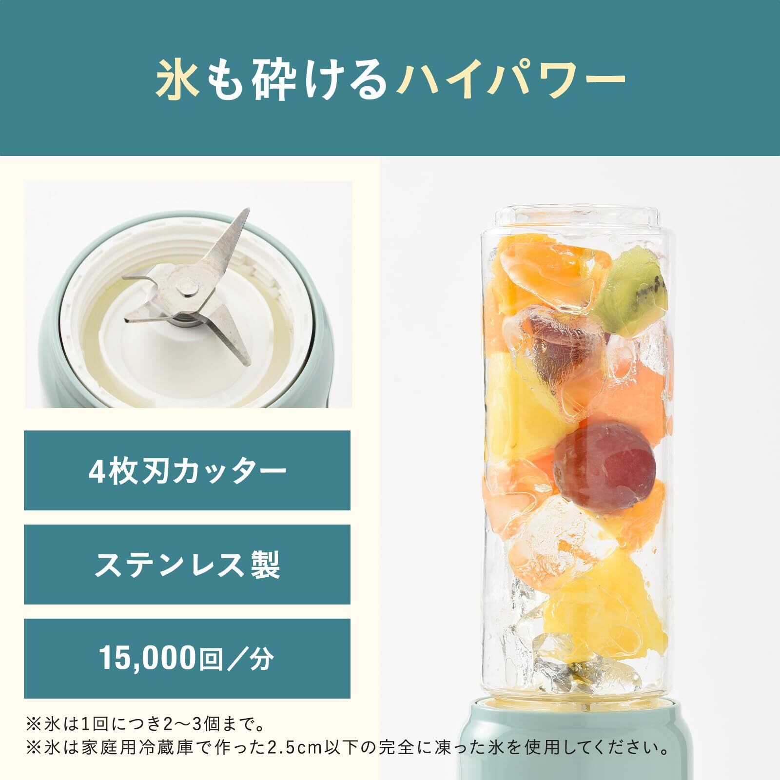 4枚刃のカッターは、氷(※1回につき2~3個まで)も一緒に砕くことができます。