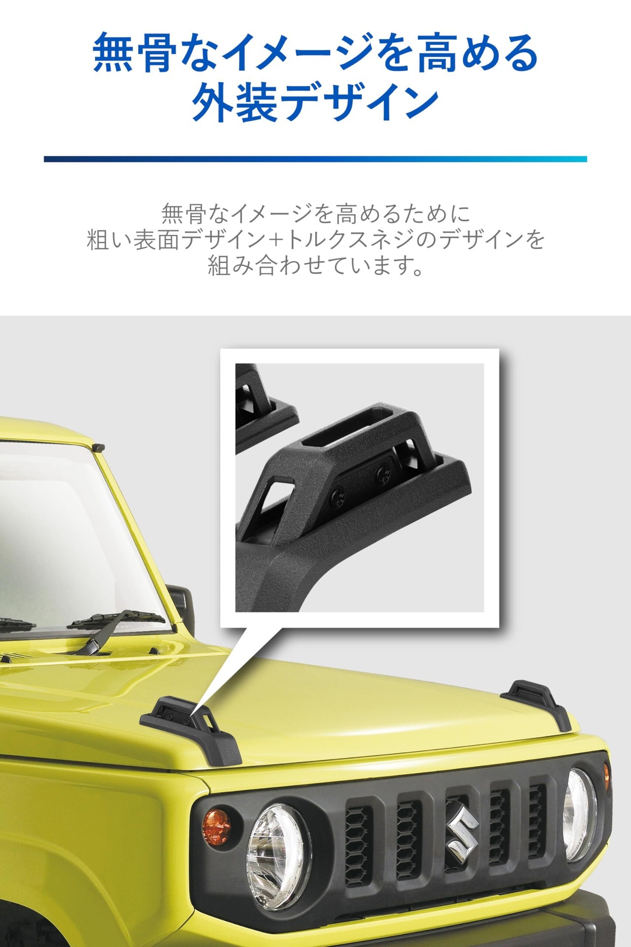 ジムニー(型式:JB64 年式:2018[平成30]年7月~)/ジムニーシエラ(型式:JB74 年式:2018[平成30]年7月~)/ジムニーノマド(型式:JC74W 年式:2025[令和7]年4月~)専用に設計・デザインしたドレスアップパーツです。