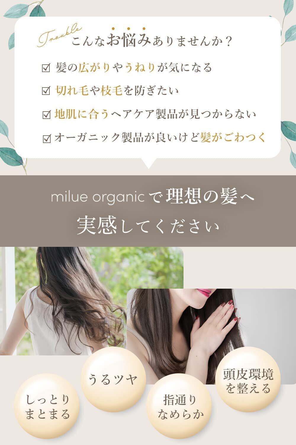 【バスタイムでうっとり癒し】オーガニックのやさしい香りの中でも、金木犀の華やかな香りがしっかりと広がり、アロマのような心地よさを感じていただけます。頭皮ケアから美髪までしっかりサポートし、エイジングケアも叶えるシャンプーセットは、milue organic のロゴ入り化粧箱入り。忙しい毎日を過ごすあの人へ、癒しの贈り物としてもぴったりです。