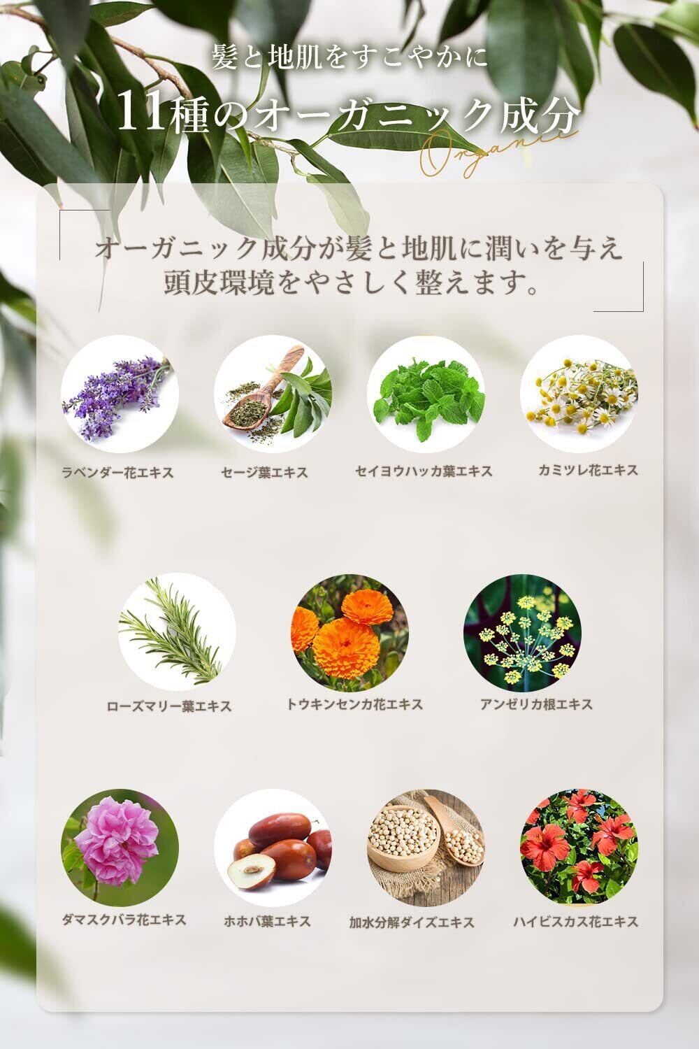 【しっかり頭皮ケア】4種類の界面活性剤により頭皮の汚れや皮脂をしっかり洗浄し頭皮ケアはもちろん怠りません。11種のオーガニック認証成分でしっかり保湿します。