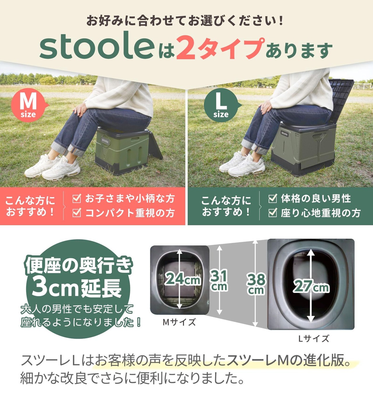 スツーレ® 【防災グッズ大賞受賞】 簡易トイレ ポータブルトイレ 防災からアウトドアまで 携帯トイレ 介護 耐荷重100㎏ (i.ブラック/Lサイズ/排便袋&凝固剤付き)