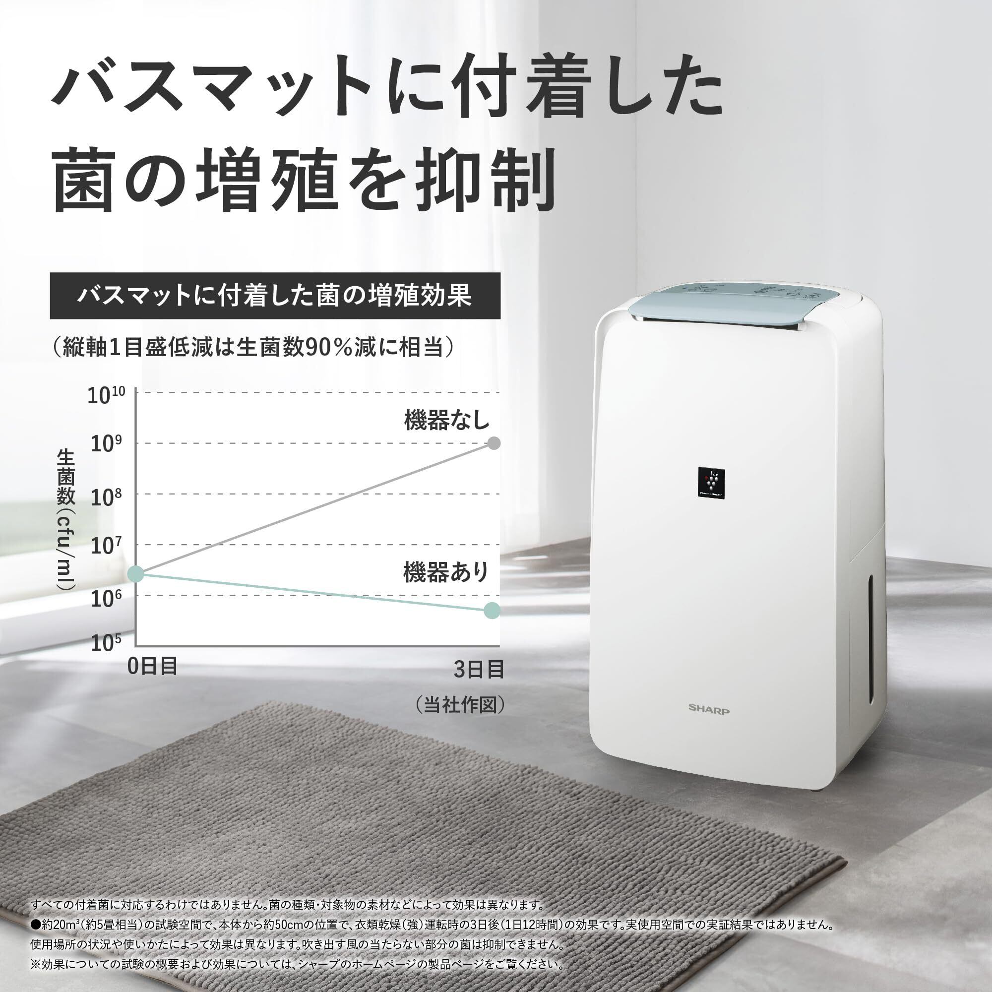 狭いスペースでの部屋干しに。省エネ除湿&コンパクトサイズ。【梅雨・夏に強いコンプレッサー方式】ヒーターを使用しないので暑い季節に高い能力を発揮。スピーディーに衣類を乾燥させます。【コンプレッサー方式の運転メカニズム】室内の湿った空気を冷却器で冷やし、結露させることで除湿。結露しやすい暑い季節に高い能力を発揮します。【省スペース】ほぼA4サイズの設置面積で狭いスペースでもお使いいただけます。プラズマクラスターで消臭&清潔。【プラズマクラスター除湿機の効果】気になる部屋干し臭の臭いを消臭。さらに付着カビ菌*1やピンクぬめり原因菌*2も抑制します。【プラズマクラスター7000搭載】シャープ独自の空気洗浄技術、プラズマクラスター7000を搭載しています。床まで届く下吹き送風。【バスマットに付着した菌*3の増殖を抑制】ルーバーを一番下向きにして頂くことで、脱衣所のマット、カーペットや床、窓ガラスの敷居など、ジメジメが気になる足元周りにもプラズマクラスターイオンと除湿された風が届きます。洗った靴を床に並べてそのまま乾かせる。使いやすさ。【24時間連続排水※1に対応】本体にホースをつなげば、連続排水が可能に。排水タンクに溜まった水を捨てに行く手間が省けたり、外出中などの長時間運転にも応えます。【ハンドル付で持ち運びラクラク】洗面所やクローゼットなどでの衣類乾燥や除湿・カビ対策・消臭に。軽量&コンパクトデザインだから、使いたい場所に手軽に持ち運べます。【使いやすさにこだわった充実機能】排水タンクは凹凸が少なくお手入れしやすい[ハンドル付きタンク]。ホコリブロックプレフィルターで大きなホコリを入り口でブロックする。内部乾燥機能で、本体の内部に残った水分を乾燥(衣類消臭「弱」運転を2時間切タイマー設定で運転して頂くことで内部を乾燥します。) *1<付着生乾き臭>●試験機関:当社調べ●試験方法:部屋干し衣類の生乾きのニオイ成分を付着させた試験片で消臭効果を6段階臭気強度表示法にて評価。■試験結果:約3時間で気にならないレベルまで消臭。CV-E71(プラズマクラスター7000搭載機種)のイオン送風「弱」運転で実施。※a※b *2<付着汗臭>●試験機関:当社調べ●試験方法:汗のニオイ成分を染み込ませた試験片で消臭効果を6段階臭気強度表示法にて評価。■試験結果:約6時間で気にならないレベルまで消臭。CV-E71(CV-R71と同等性能機種)のイオン送風「弱」運転で実施。 *3<付着菌>●試験依頼先:(一財)日本食品分析センター●試験成績書:第18148684001-0101号●試験方法:本体から約50cmの位置で、ある1種の菌を付着させた試験片(バスマット)に水を滴下後、CV-J71(プラズマクラスター7000搭載機種)のルーバー下向きで衣類乾燥「強」12時間運転と「運転停止」12時間を毎日繰り返し行い、機器なしと菌数を比較。■試験結果:3日後、機器ありでは菌の増殖を抑制することを確認。 ※1 市販のホース<内径15mm>が必要です。