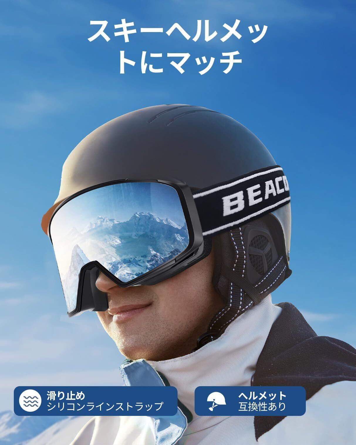 超180°広視野レンズ UV400紫外線カット: BEACOOLスキー用ゴーグルは大きいレンズと立体成型されたレンズ構造を採用し、視野角が大幅に広がり安全な視界が多少確保されます。さらに、スノボーゴーグルはUV400 カット機能で優れた光学的透明度を備え、眩しさや有害な99%紫外線を保護し、目を守りつつ高い光線透明性を提供します。 晴れていても曇っていても、スキーやスノーボードやモトクロス、その他のスポーツをしていても、スノーボード ゴーグルは雪の反射を効果的に軽減し、雪面の凸凹を把握しやすくなり、快適なスキー体験します