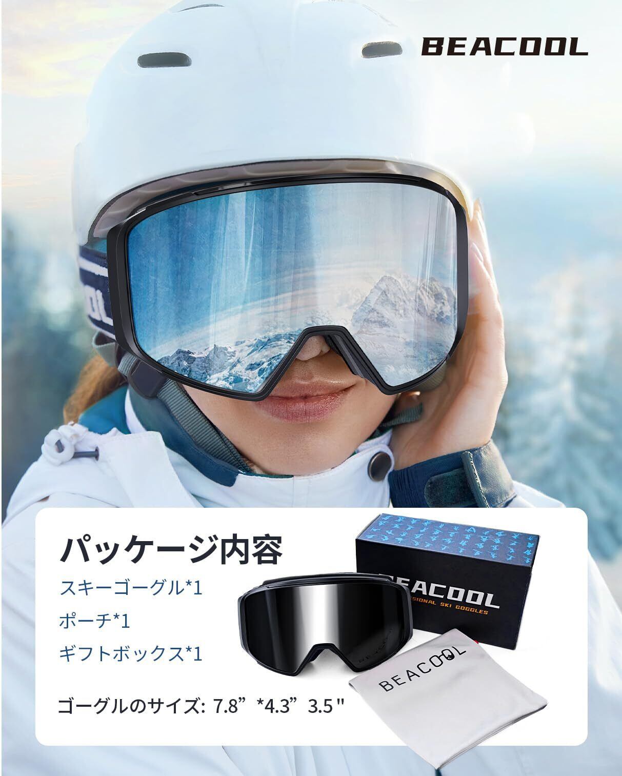 [BEACOOL] スキーゴーグル 磁気 スキーゴーグル 両層磁気レンズ スノーゴーグル スノーボードゴーグル 180°広視野 レンズ交換可 スノーモービル 全天候対応 OTG ヘルメット対応 冬山登山通気/曇り防止 防風/防雪/防塵 UV400紫外線防止レディース メンズ 大人 ユース ユニセックス スノーゴーグル 耐衝撃