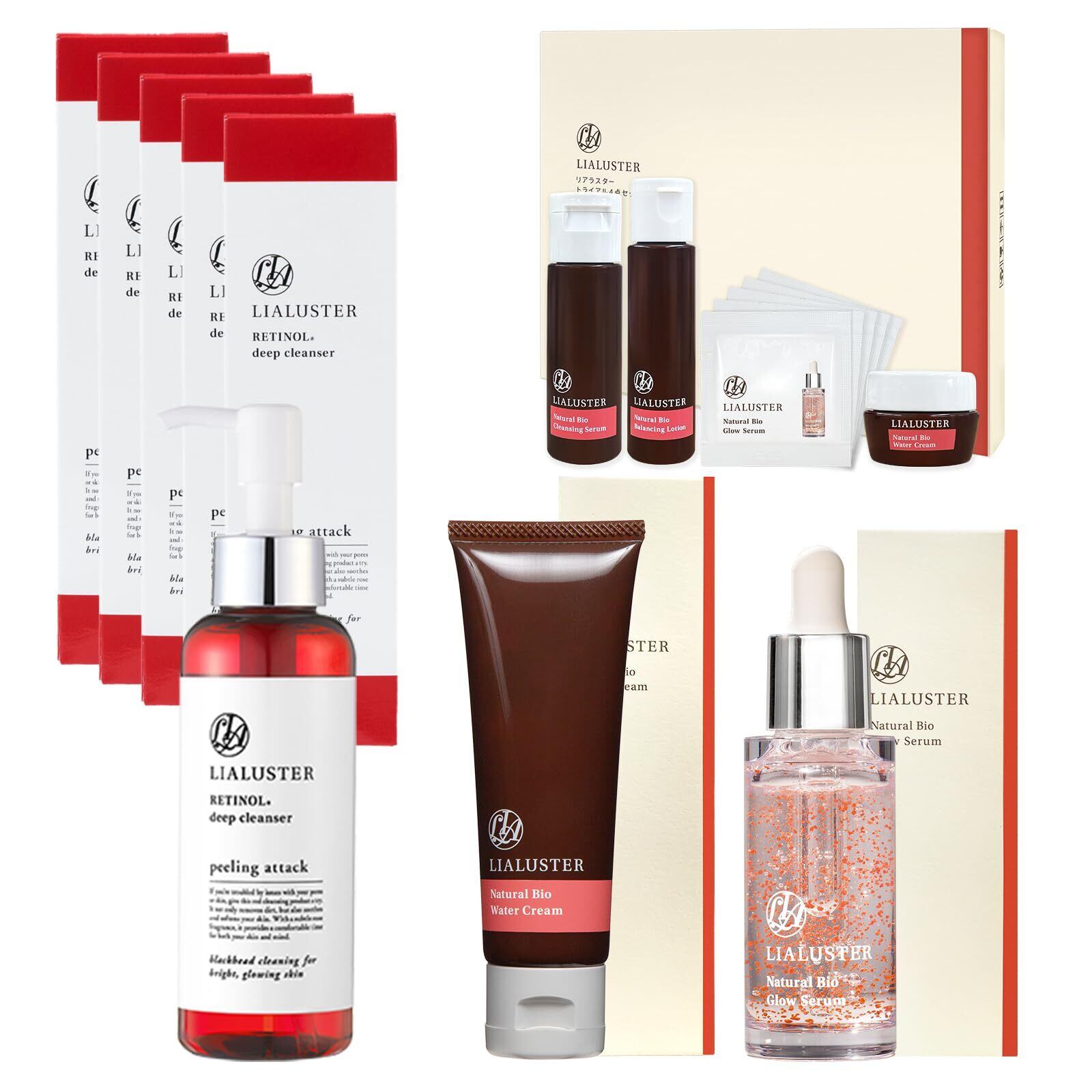 リアラスター レチノール ディープクレンザー ピーリングアタック 110g (ディープクレンザー5本+トライアルセット・美容液・クリーム各種プレゼント)