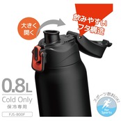 本体サイズ(約):幅8×奥行き8.5×高さ23.5cm、本体重量(約):400g、容量:800ml