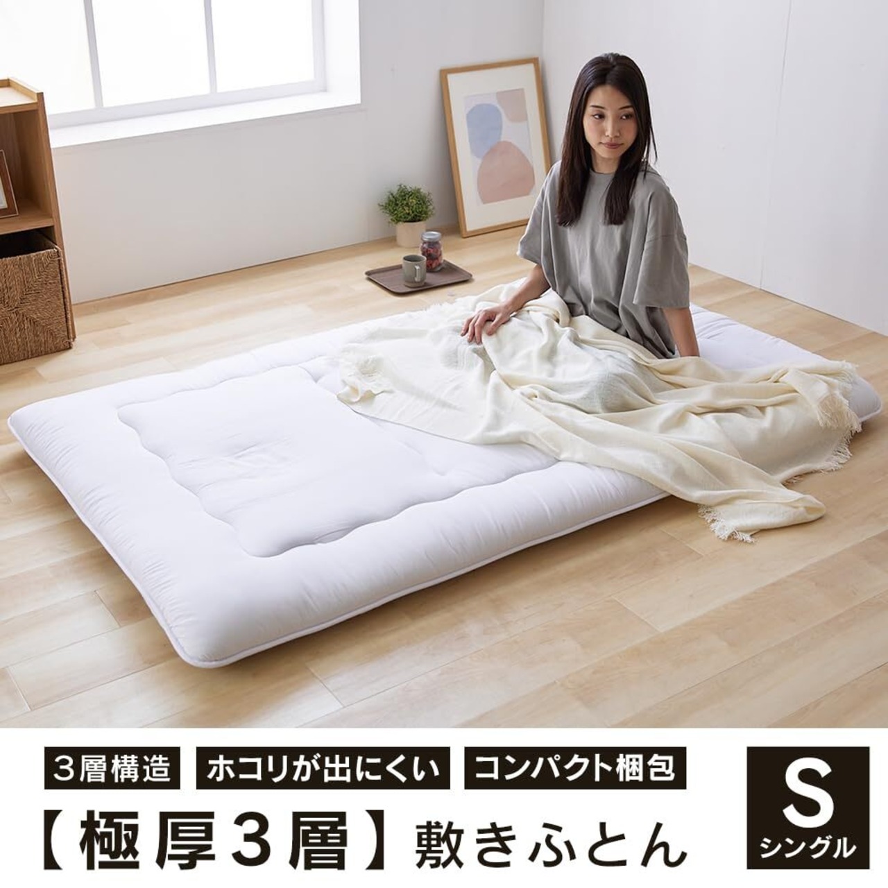 アイリスプラザ 敷き布団 三層構造 極厚10cm ボリューム感 ウレタン入 巻綿使用 しっかり支える ホコリ出にくい 肌触り コンパクト 三つ折り シングル