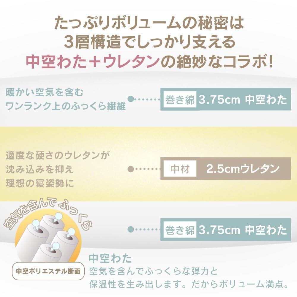 体を支えるウレタンを、肌触りのいい柔らかい巻綿で包んだボリュームのある三層構造