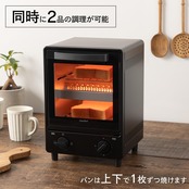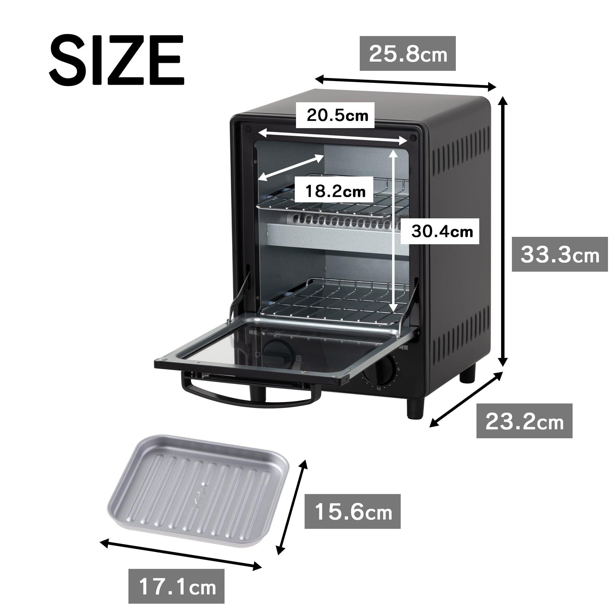 【縦型2段式で省スペース】横幅おおよそ25cmのコンパクトな縦型2段式設計で、狭いスペースでも置くことができます。庫内容量が8Lで十分あり、2枚のトースト一気においしく焼きあげます。
