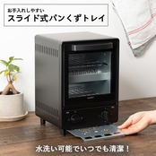 【使い勝手も重視】本トースターはスライドオープンドア設計のため、ドアを開けるとたんに受け皿も引き出され、簡単に取り出します。さらに、2枚の受皿と1枚のパンくずトレーも付属しており、普段のお手入れもラクになります。