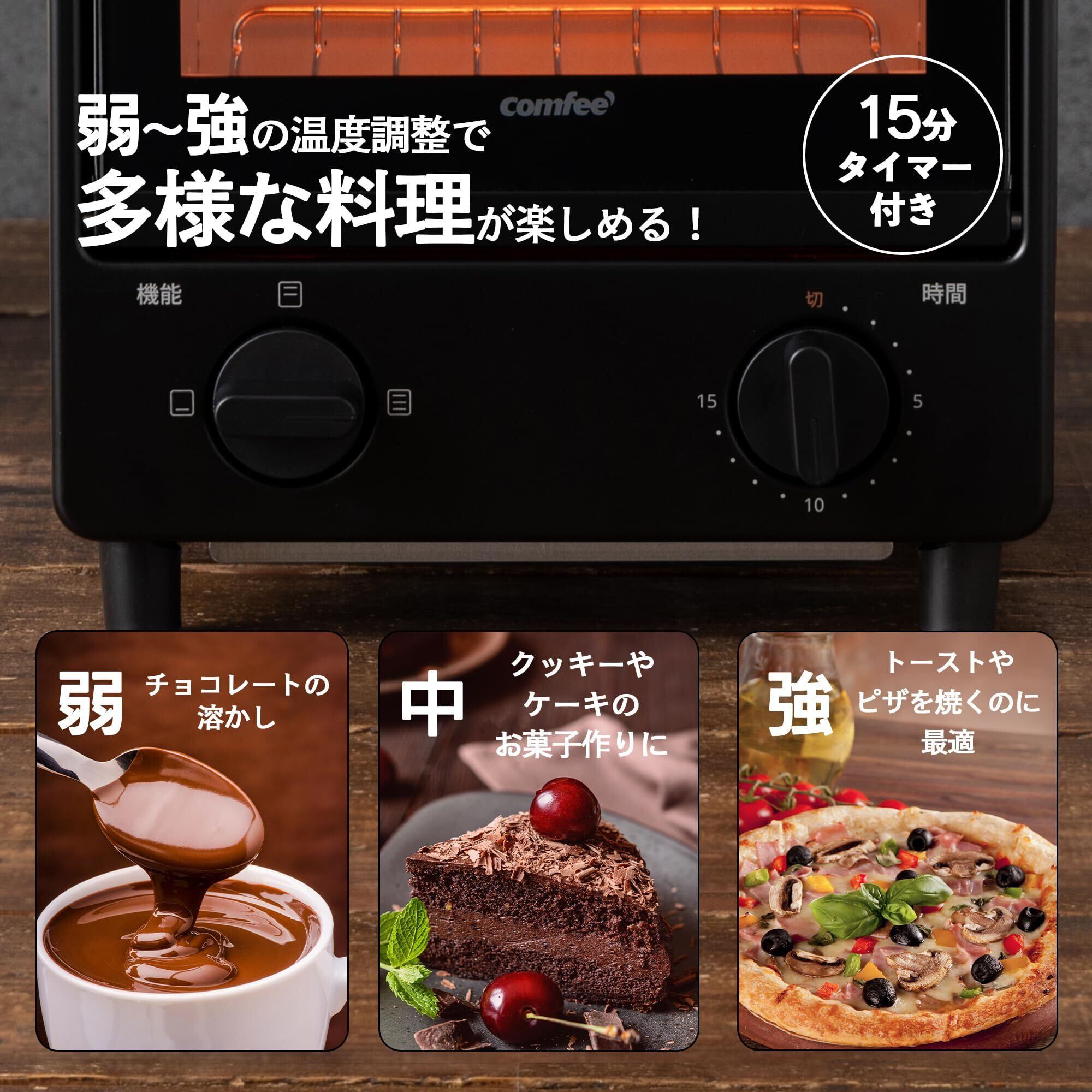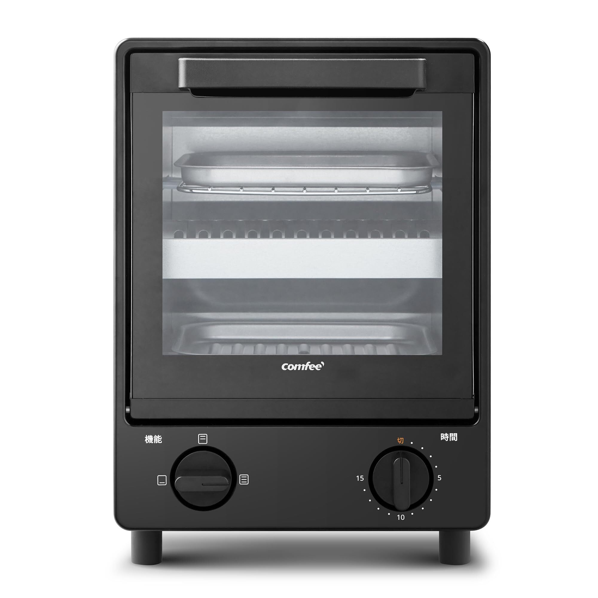 COMFEE' オーブントースター 縦型 上下2段構造 同時調理可能 3段階温度調節 15分タイマー 焼きムラ抑え スライドオープンドア CF-MF083-BK