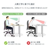 【安定感抜群・耐重20kg】●Boyata PCスタンドの角度調節は多少力がいりますが、成人女性でも問題ない程度です。逆に、調節に力が必要な分しっかりしているので、使用中に下がってくるようなことは無い、頑丈で安定しています。●安心の両足構造で傾きがなく、安定性が抜群で、20kgまで耐えられます。