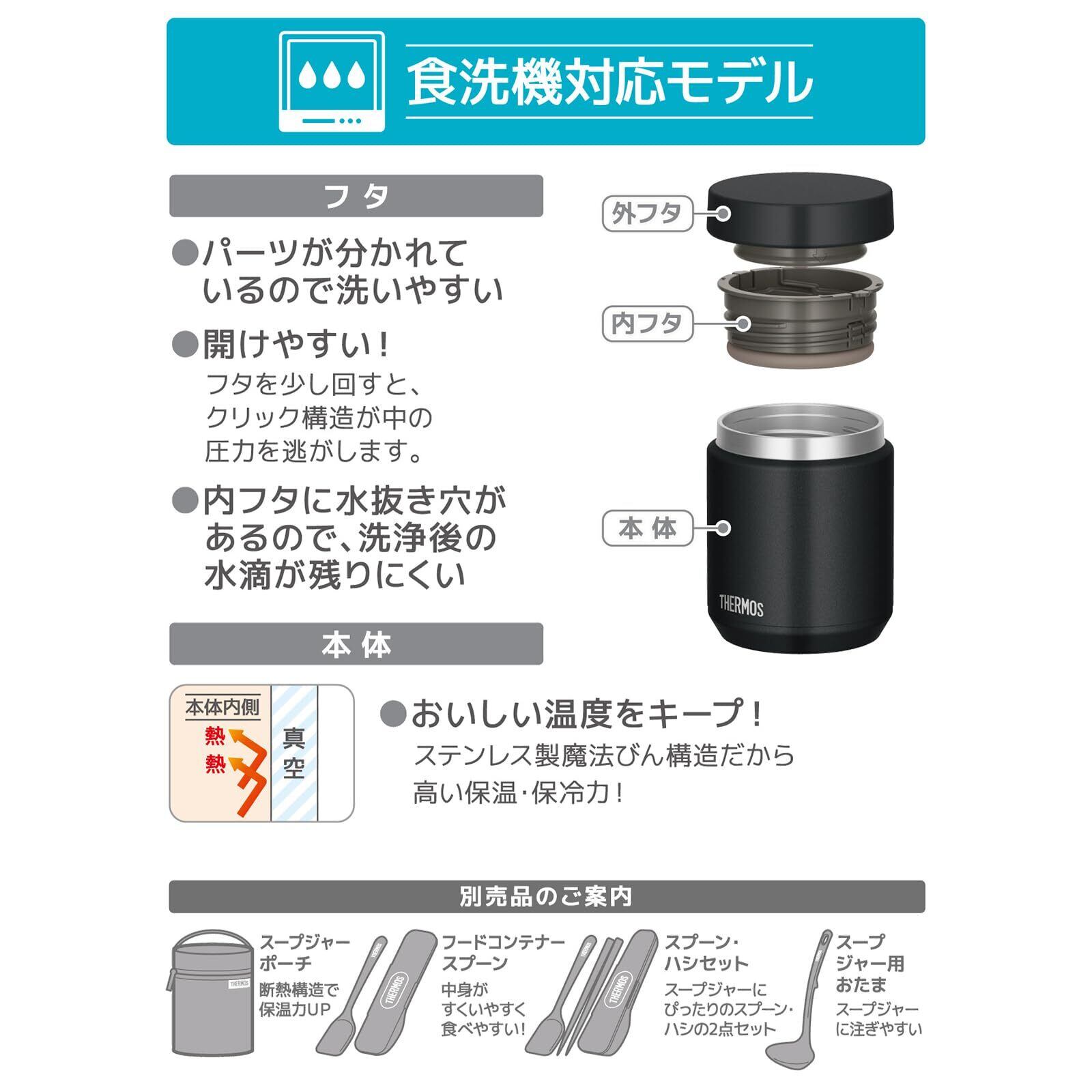 【在庫処分】【食洗機対応モデル】 サーモス 真空断熱スープジャー 400ml ブラック 全パーツ食洗機OK 保温保冷 お手入れ簡単 口当たりがやさしい丸口設計 スタンダードモデル JED-400 BK | ニコニコSHOP