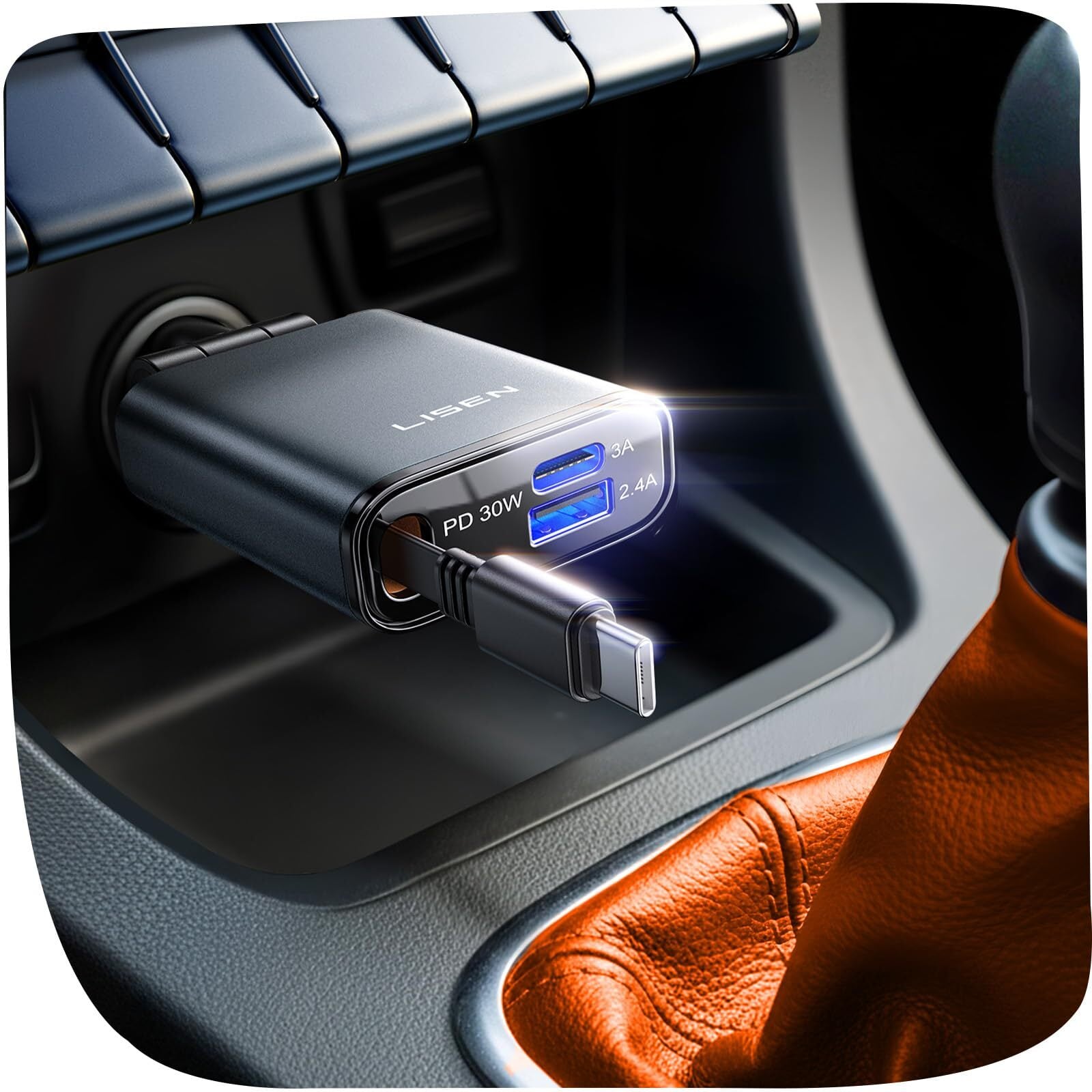 【新春セール】LISEN 【片づけの美学】 車 充電器 シガーソケット USB-C PD30W 巻き取り式充電ケーブル 総57W 3in1 しがーソケット usb 急速充電 車載充電器 カーチャージャー タイプc カー用品 カーオフィシャルグッズ 耐高温/短絡保護 iPhone 15 16 Pixel 9a Aquos Wish4 Sense9 スイッチ2 iPad AirPods 対応 12/24V両用 | ニコニコSHOP