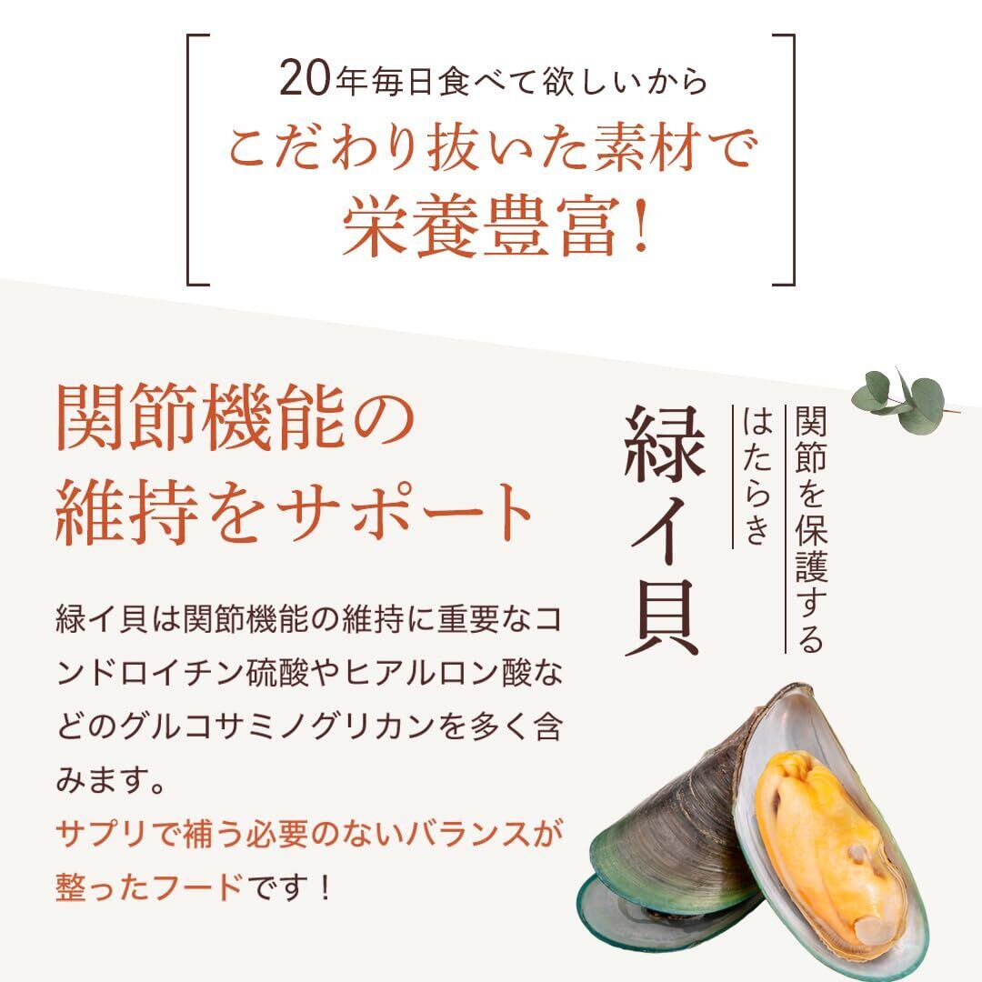 スーパーフードと言われる「緑イ貝」を使用し関節疾患の予防や症状を和らげ、皮膚ケアに効果のあるオメガ6脂肪酸などの成分も配合。