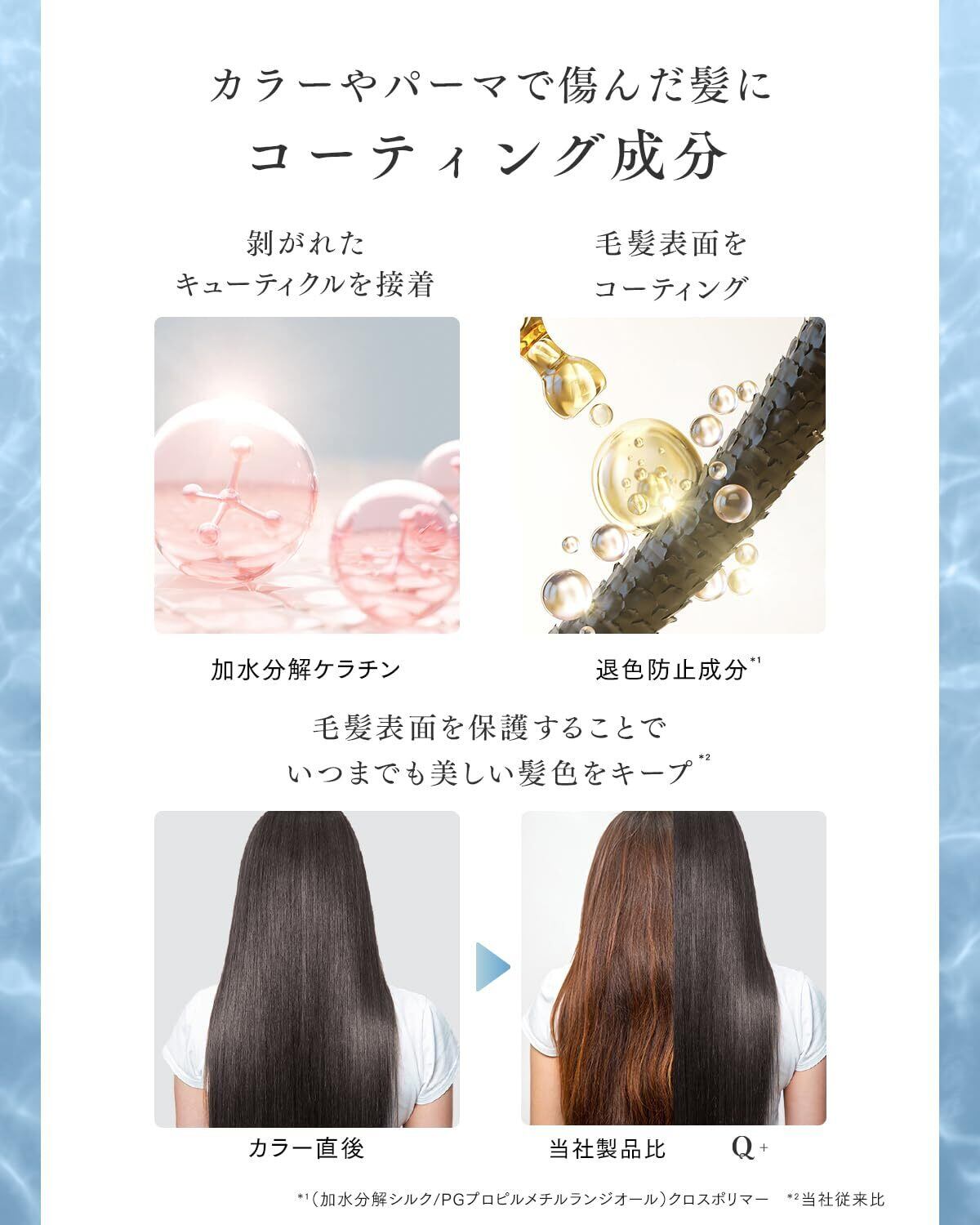 ✨【 ◆表面を保護し"髪色キープ" 】日常ダメージから髪を守るコーティング成分*を配合。毛髪表面を保護することで美しい髪色を長くキープ(当社従来比)します。(*加水分解ケラチン・(加水分解シルク/PGプロピルメチルシランジオール)クロスポリマー)