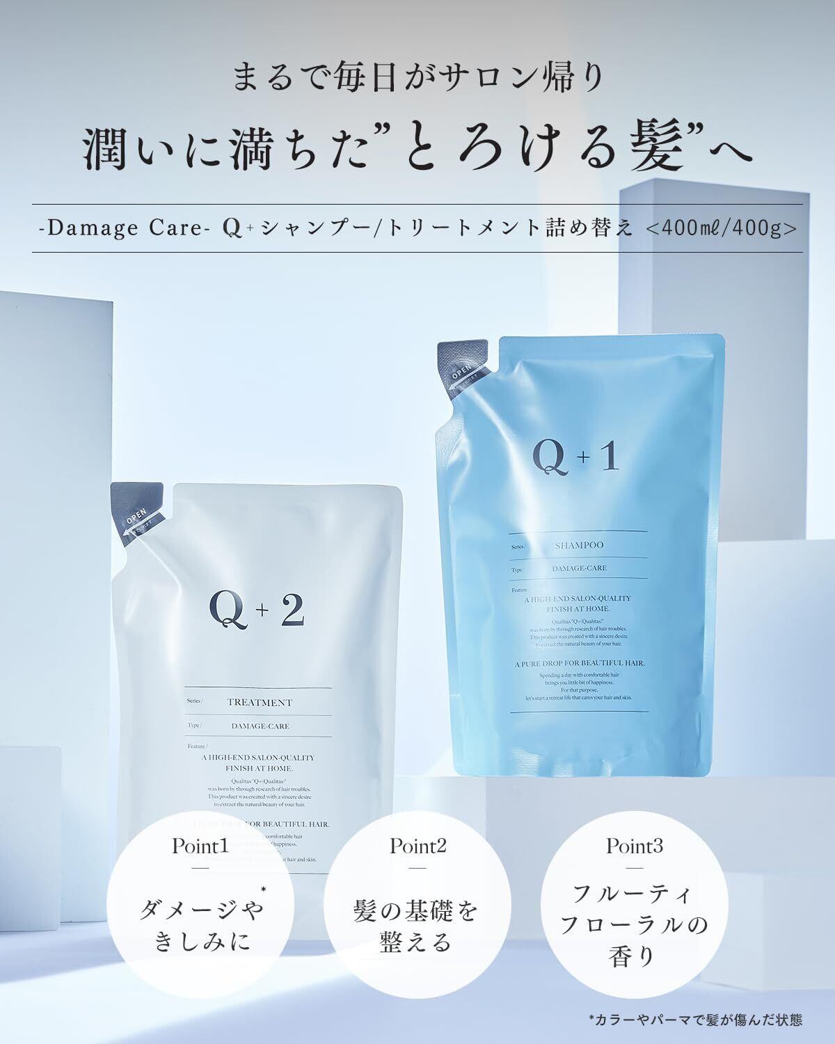 Q+ クオリタス[ ダメージケア ]シャンプー トリートメント セット 詰め替え 美容室専売品 アミノ酸シャンプー ノンシリコンシャンプー 400ml/400g