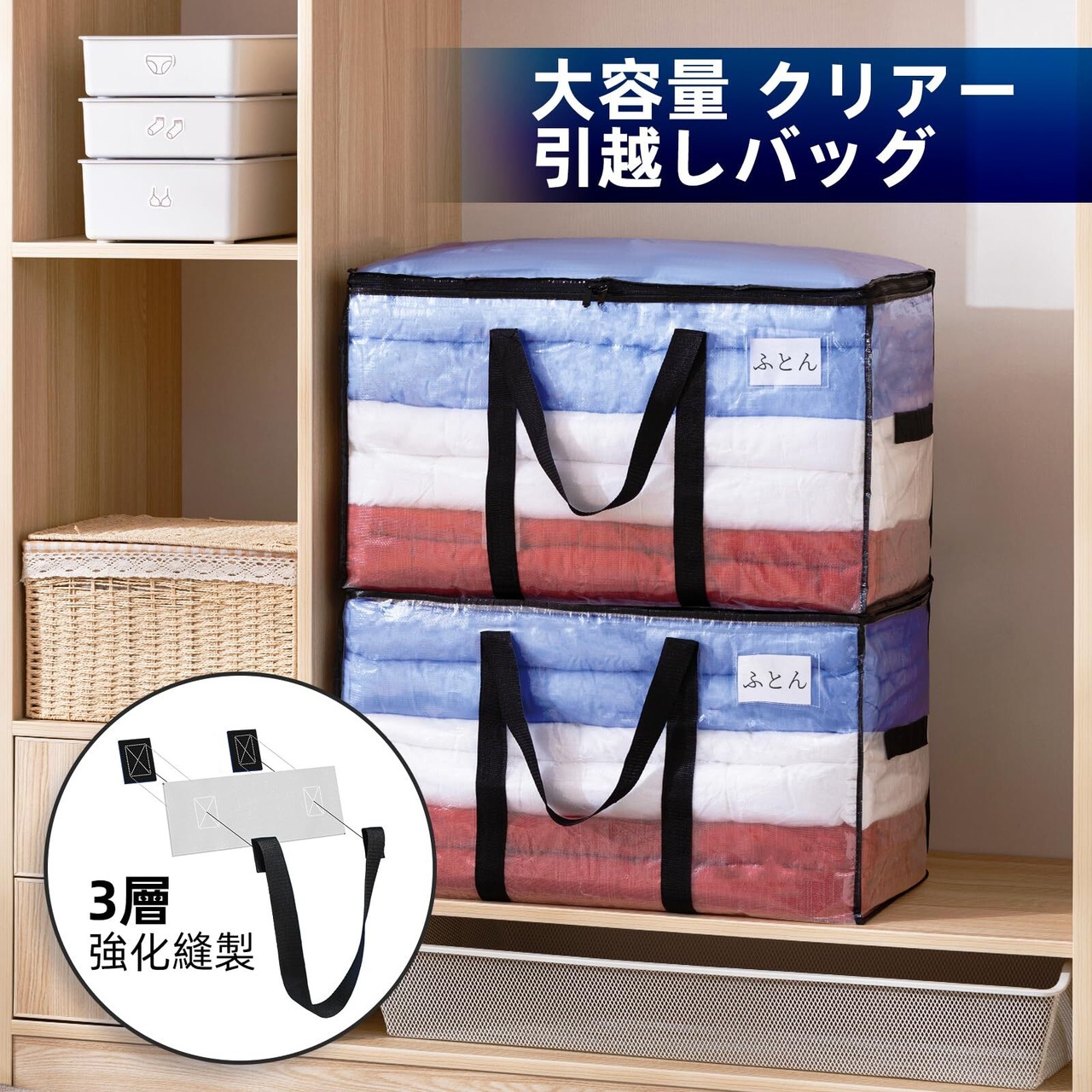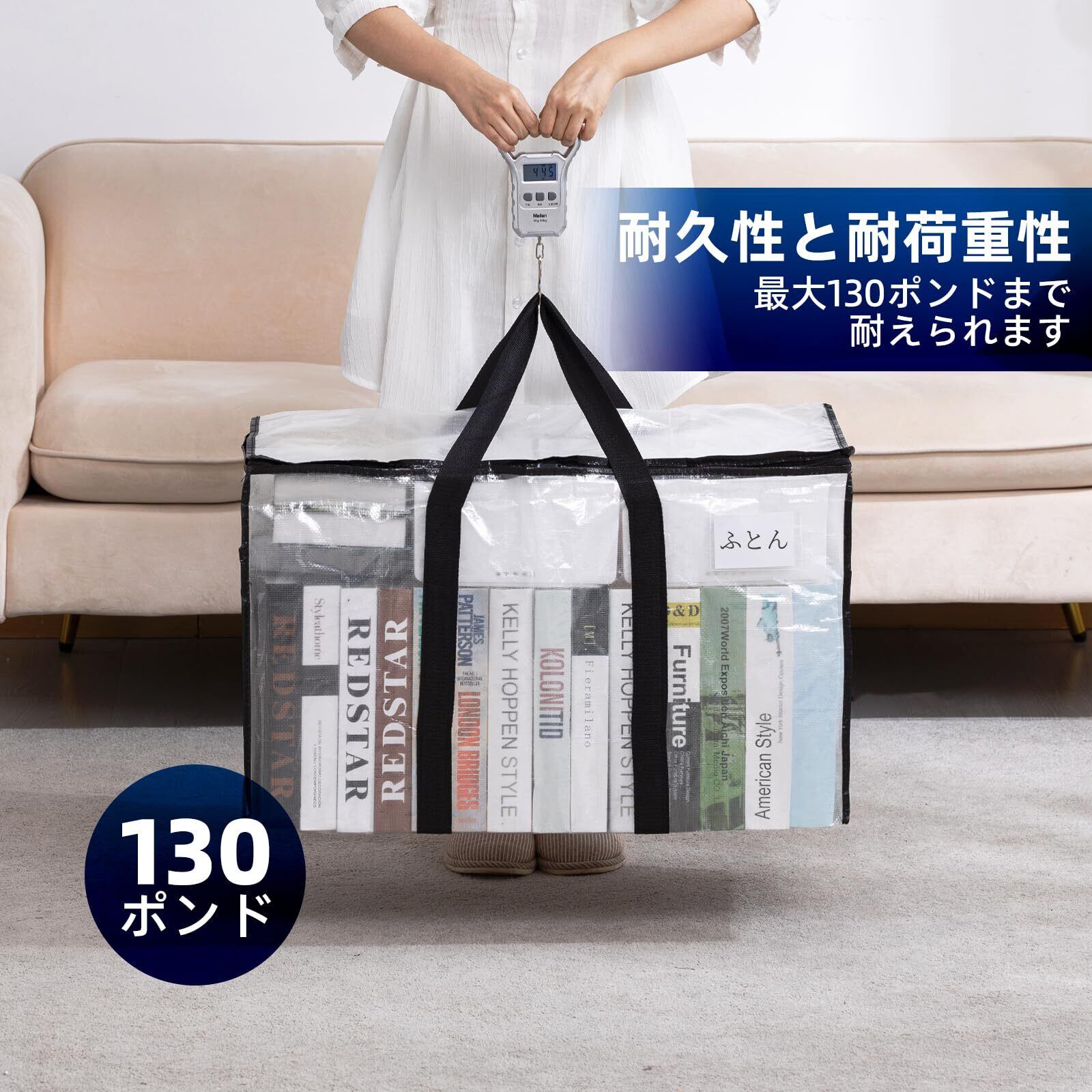 【在庫処分】TAILI 大きいバッグ 布団収納袋 引越しバッグ 収納ケース 特大容量 透明窓 持ち手付き 衣装ケース 洋服 羽毛布団 防塵防水 折りたたみ式 カバン 省スペース 引っ越し 背負える キャンプ 旅行 耐荷重 透明 4個セット 100L | ニコニコSHOP