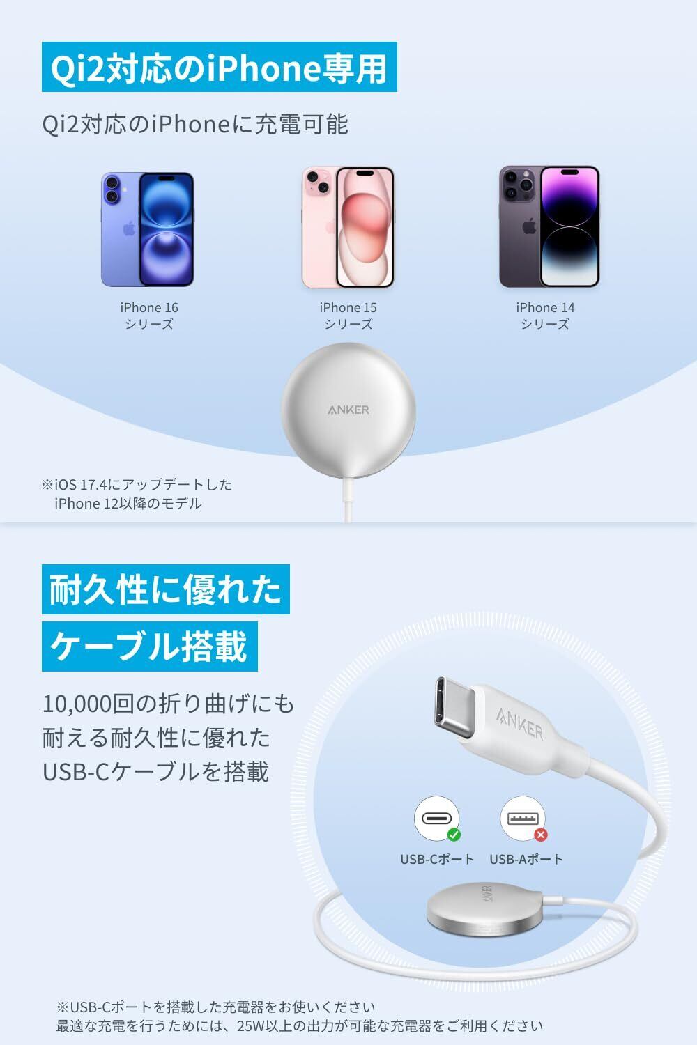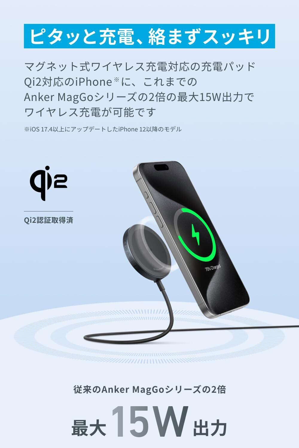【数量限定】Anker MagGo Wireless Charger (Pad) 【Qi2対応 / マグネット式ワイヤレス充電器 / 15W】iPhone MagSafe対応 iPhone 16 / 15 / 14 / 13 シリーズ ブラック | ニコニコSHOP