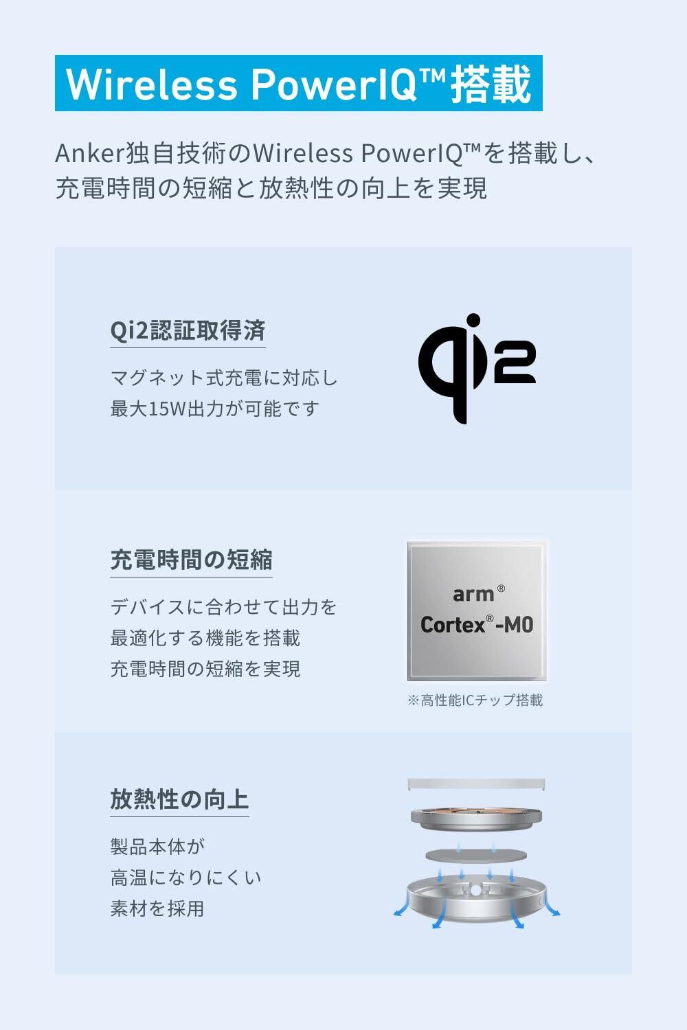 Wireless PowerIQ 搭載:Anker独自のWireless PowerIQを搭載し、充電時間の短縮と放熱性の向上を実現しました。